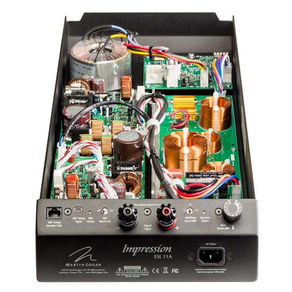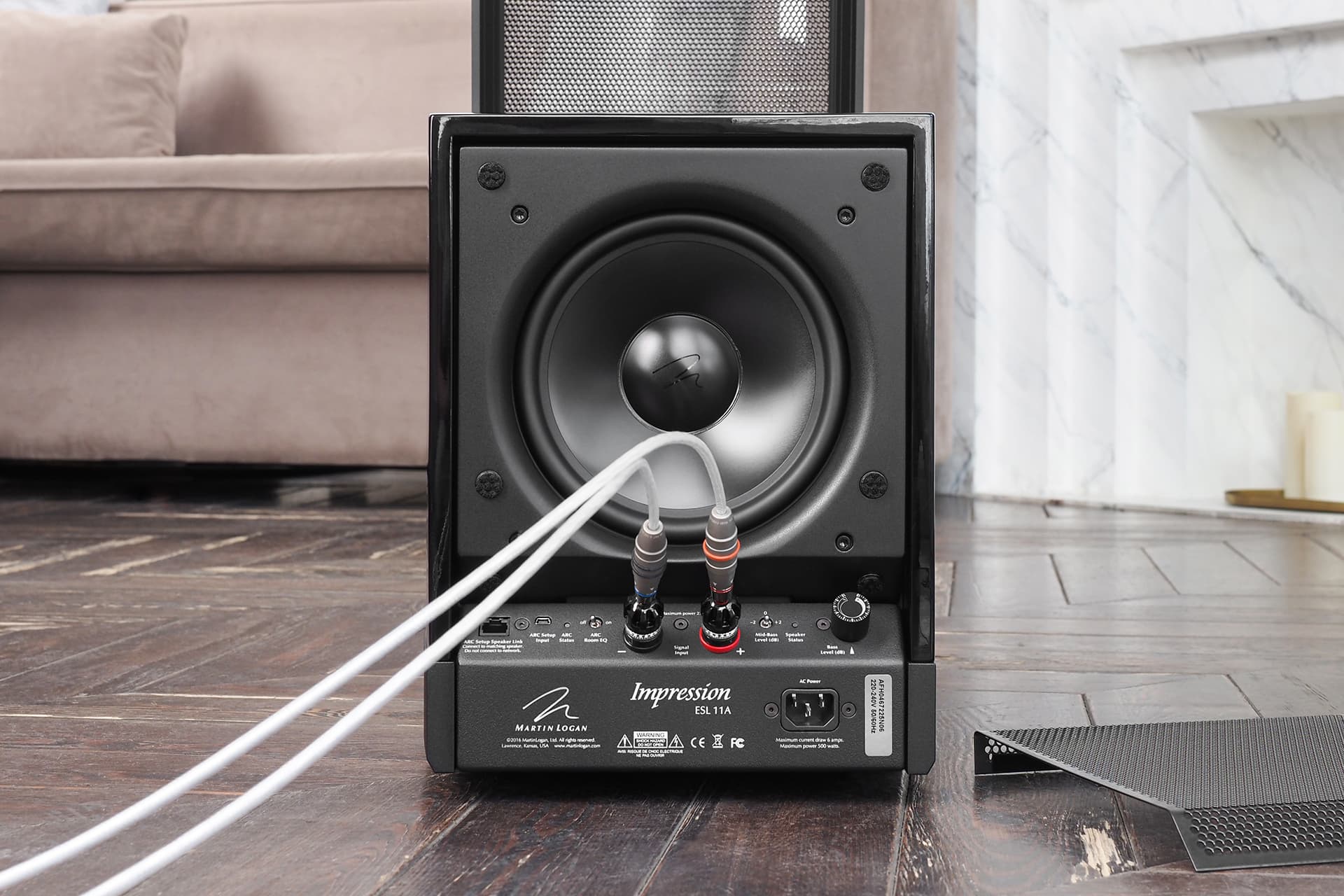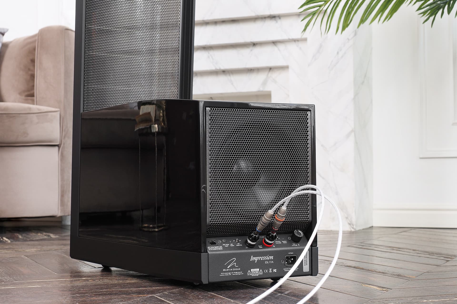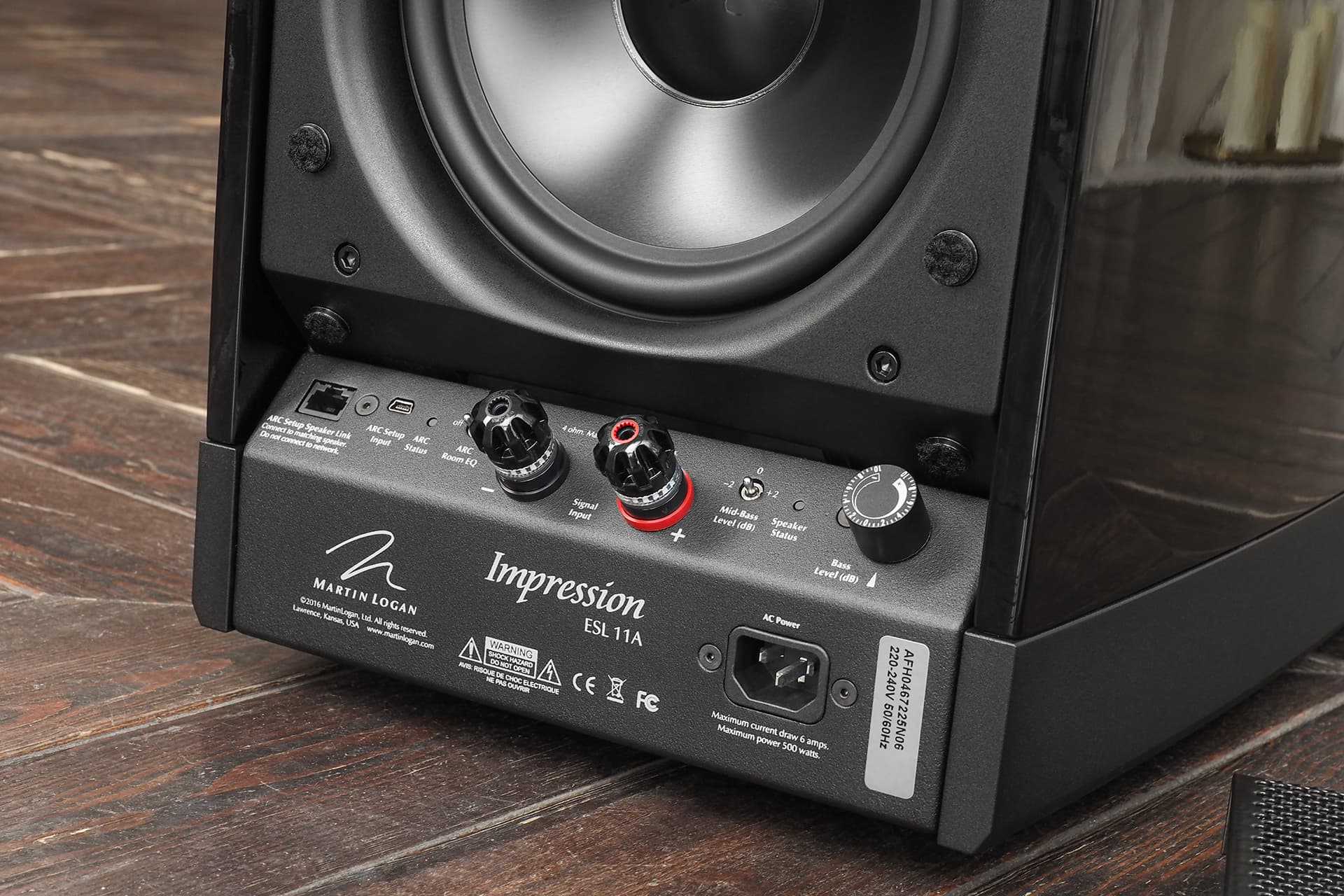 Героиню сегодняшнего теста разработчики назвали Martin Logan Impression ElectroMotion ESL 11A. Производить впечатление (impression — англ. «впечатление») акустика действительно умеет, у нее для этого есть много всего интересного: 11-дюймовый электростатический преобразователь XStat, два 8-дюймовых сабвуфера PoweredForce Forward, работающих от двух 275-ваттных (!) усилителей класса D и управляемые 24-битным процессором Vojtko, система автокоррекции под помещение… В общем, действительно впечатляющие колонки — тут никаких сомнений. А вот насколько и чем именно — будем разбираться.