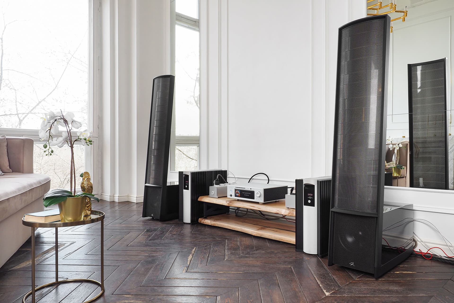 Плеер Aurender A30 был выбран как заведомо высококачественный источник с удобным управлением через ПО Aurender Conductor, позволяющий комфортно находить нужные треки и переключаться между ними. Что же касается Mark Levinson No. 53 «аудиофильской дочки» в составе корпорации Harman International Industries, то тут прибор выбран, что называется, с запасом — и по мощности, и по качеству. Он способен выдавать до 1000 Вт на 4 Омах, чего в данном случае более чем достаточно. Ну в плане качества… Рассказ обо всем, что сделали разработчики этого референсного и крайне дорогого усилителя, займет несколько абзацев. Не будем даже и пытаться уместить его в несколько фраз, лучше когда-нибудь посвятим ему отдельный обзор.