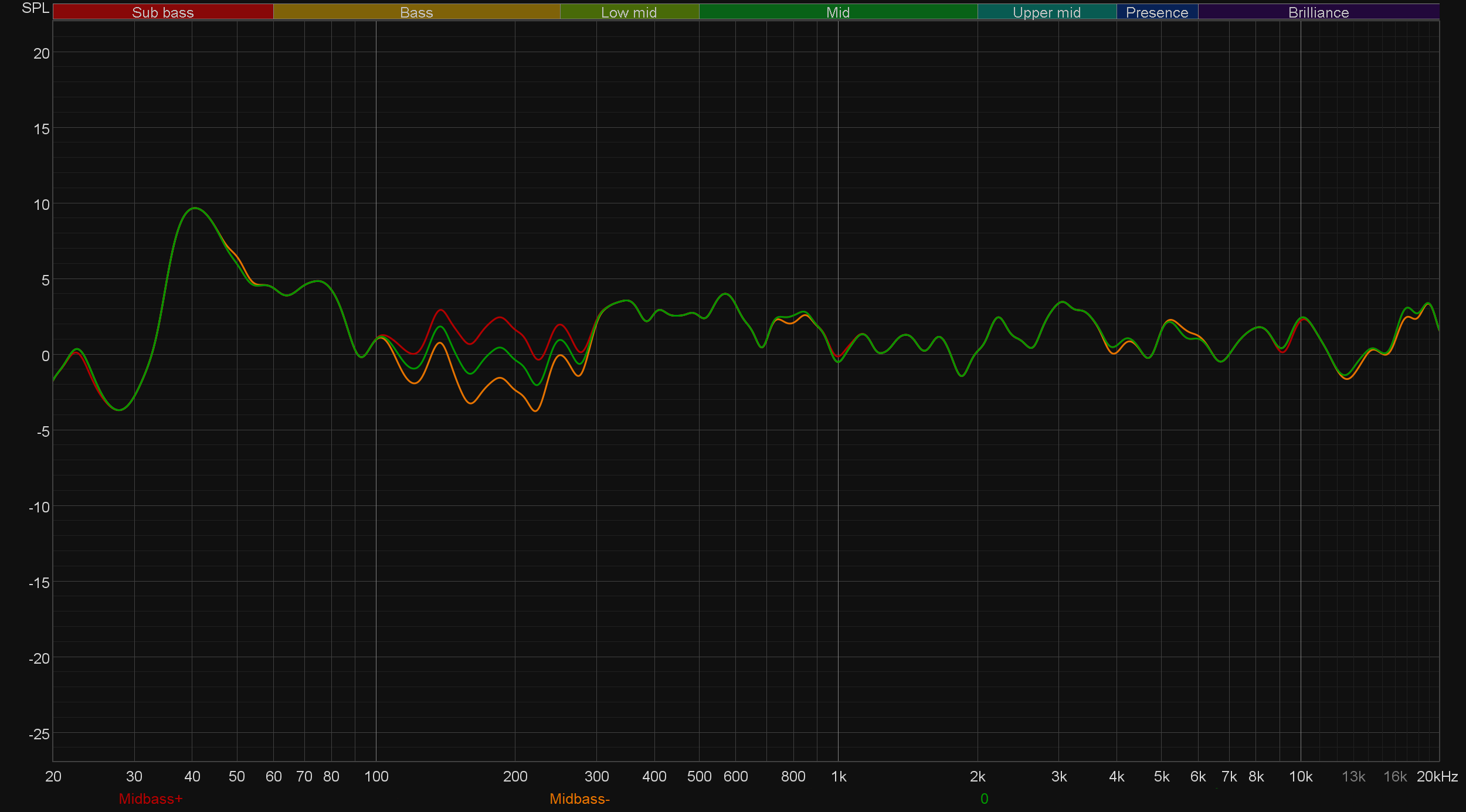 Как видно, работает регулятор очень эффективно, басовую составляющую можно основательно увести назад, подчеркнув тем самым средние частоты и избавившись от лишнего «гудения», если таковое присутствует. Плюс к этому колонки оборудованы переключателем, регулирующим акцент на мидбасе в пределах ±2 дБ — тоже весьма полезная опция, позволяющая подчеркнуть диапазон, который изначально чуть уведен назад.