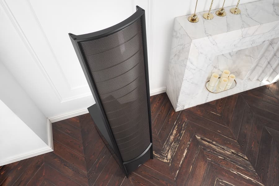 Об истории создания и конструкции электростатических излучателей Martin Logan мы подобно поговорили в обзоре ElectroMotion ESL, потому сегодня просто вкратце упомянем ключевые моменты. Начнем с технологии CLS (Curvilinear Line Source) — изогнутой формы драйверов, позволяющей расширить диаграмму направленности. У рассматриваемых колонок фирменный излучатель XStat CLS вырос до солидных размеров — 112×28 см. Для сравнения, у базовой модели линейки ElectroMotion ESL размер драйвера составляет 86×22 см.