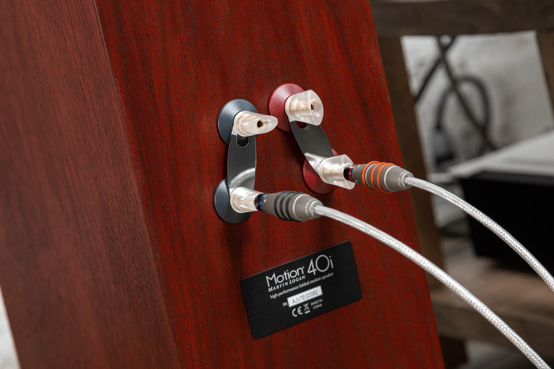 Данный обзор посвящен средней модели в линейке. Motion 40i — это трехполосные фазоинверторные напольные акустические системы с твитером, конструкции которого стоит посвятить отдельный абзац, одним 5,5-дюймовым СЧ-динамиком и двумя 6,5-дюймовыми НЧ-динамиками. Передняя панель изготовлена из MDF толщиной 31 мм, боковые стенки имеют толщину 18 мм. Для увеличения жесткости корпус оснащен внутренними распорками. Грили крепятся на магниты. Порт фазоинвертора выведен на заднюю панель. Удобные клеммы позволяют производить биампинговое подключение.