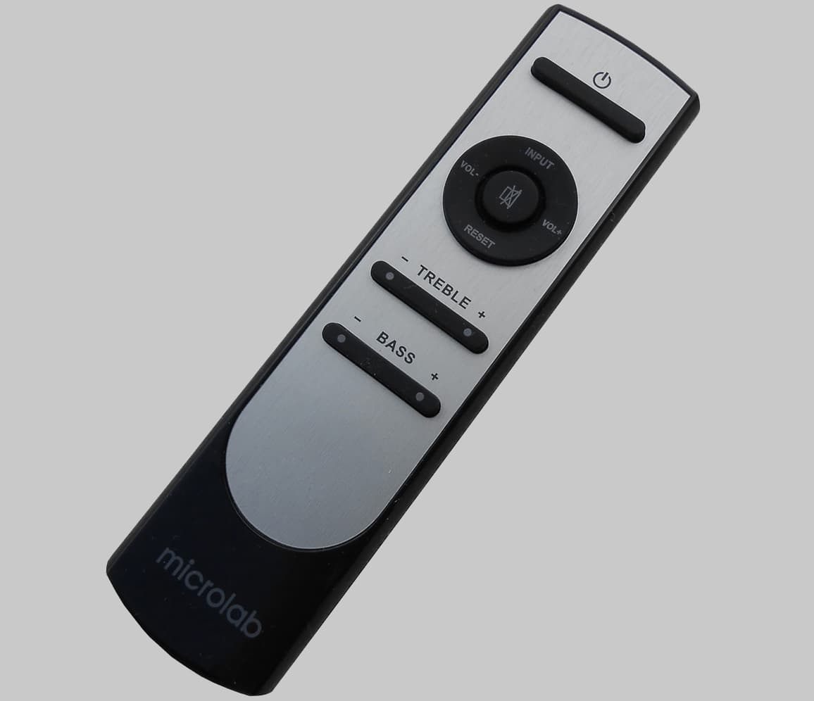 Оба комплекта акустики поставляются с одинаковым пультом ДУ, который Microlab уже использовала с рядом более ранних моделей. Пульт достаточно простой и бюджетный, что особенно заметно на фоне оригинального дизайна и высокого качества исполнения колонок, которыми ему суждено управлять. Но уж если нужно было на чем-то сэкономить, так пусть это лучше будет пульт.