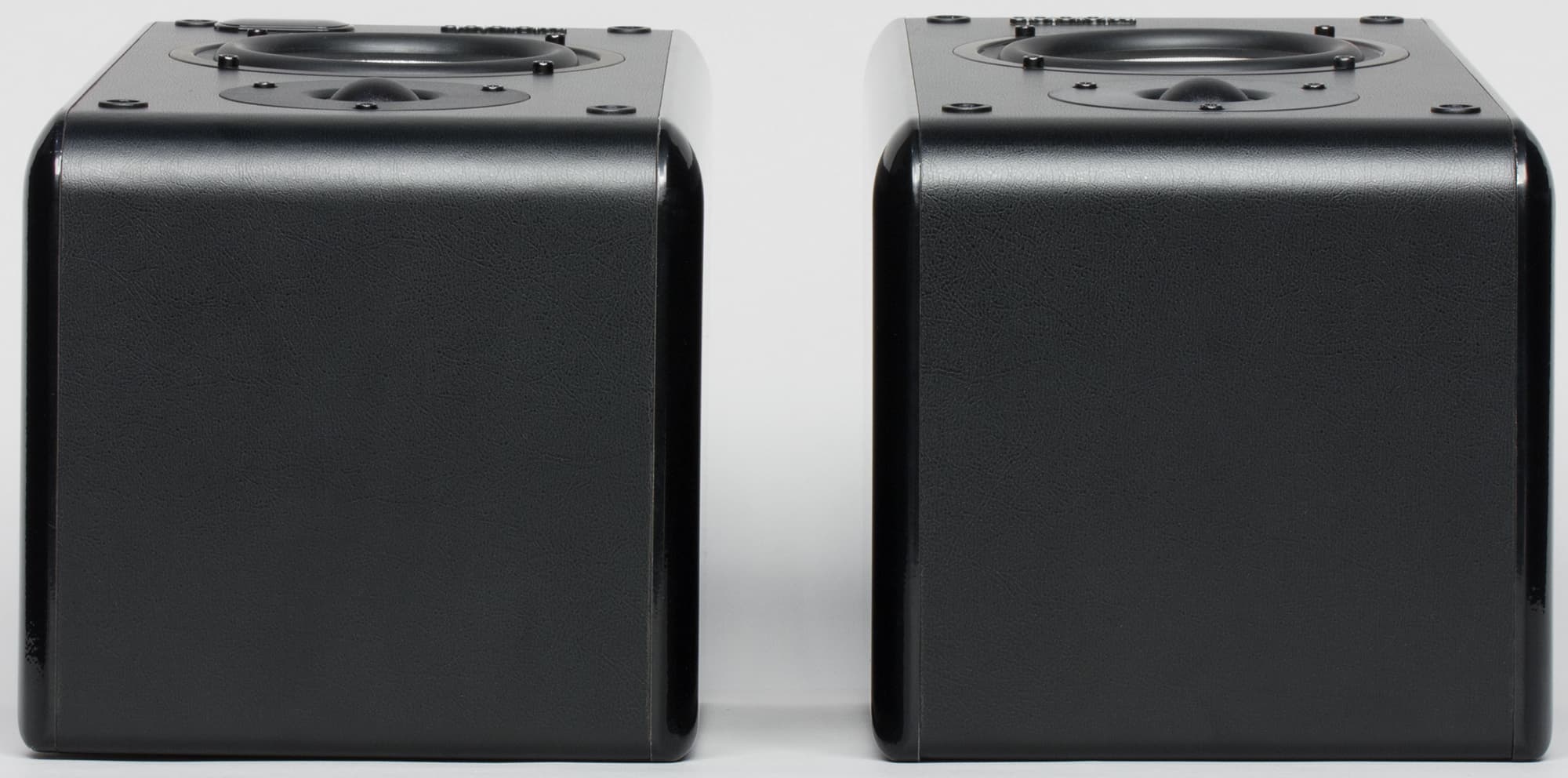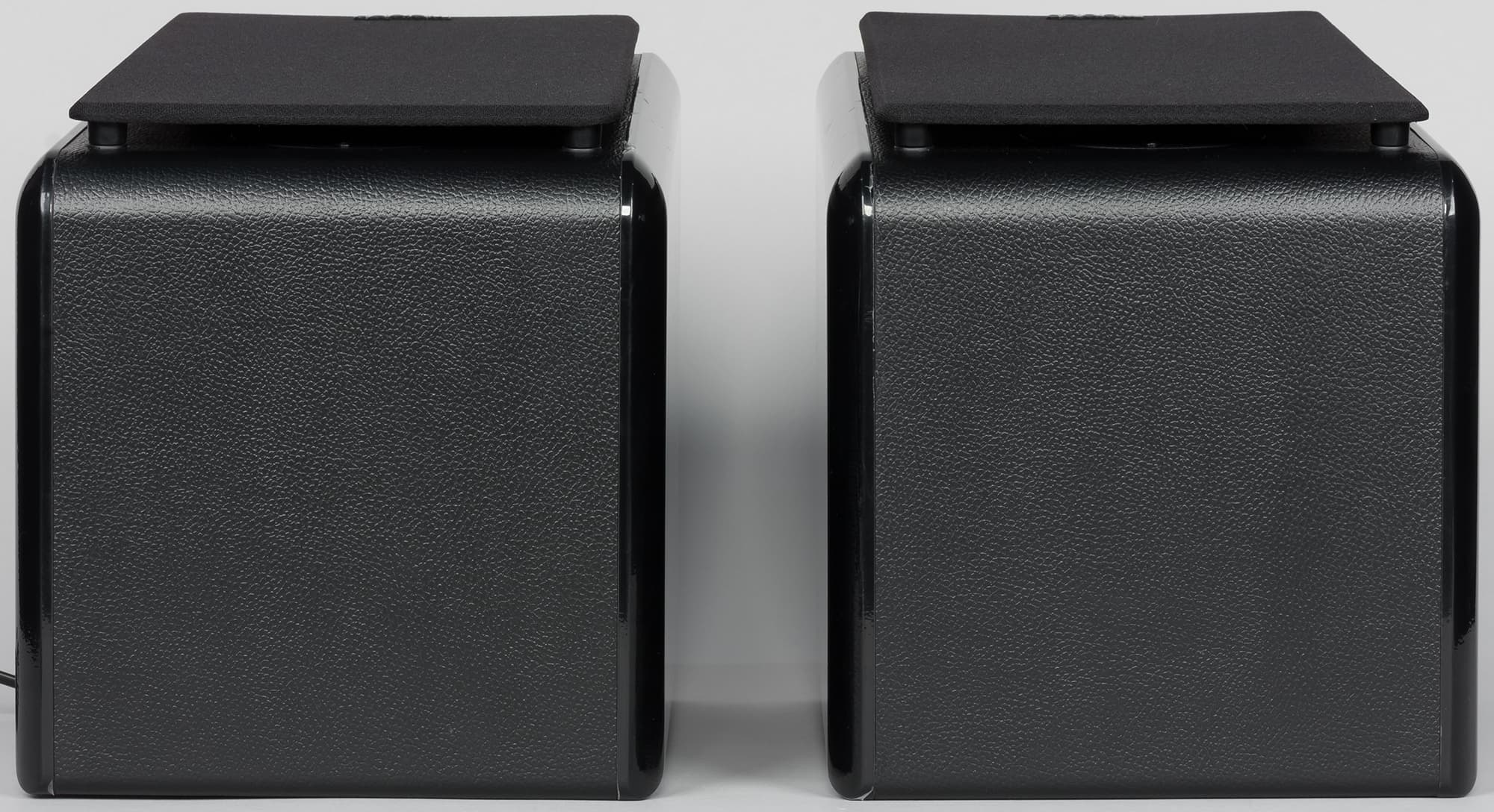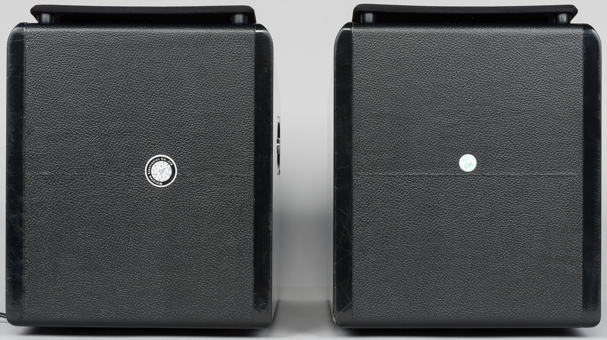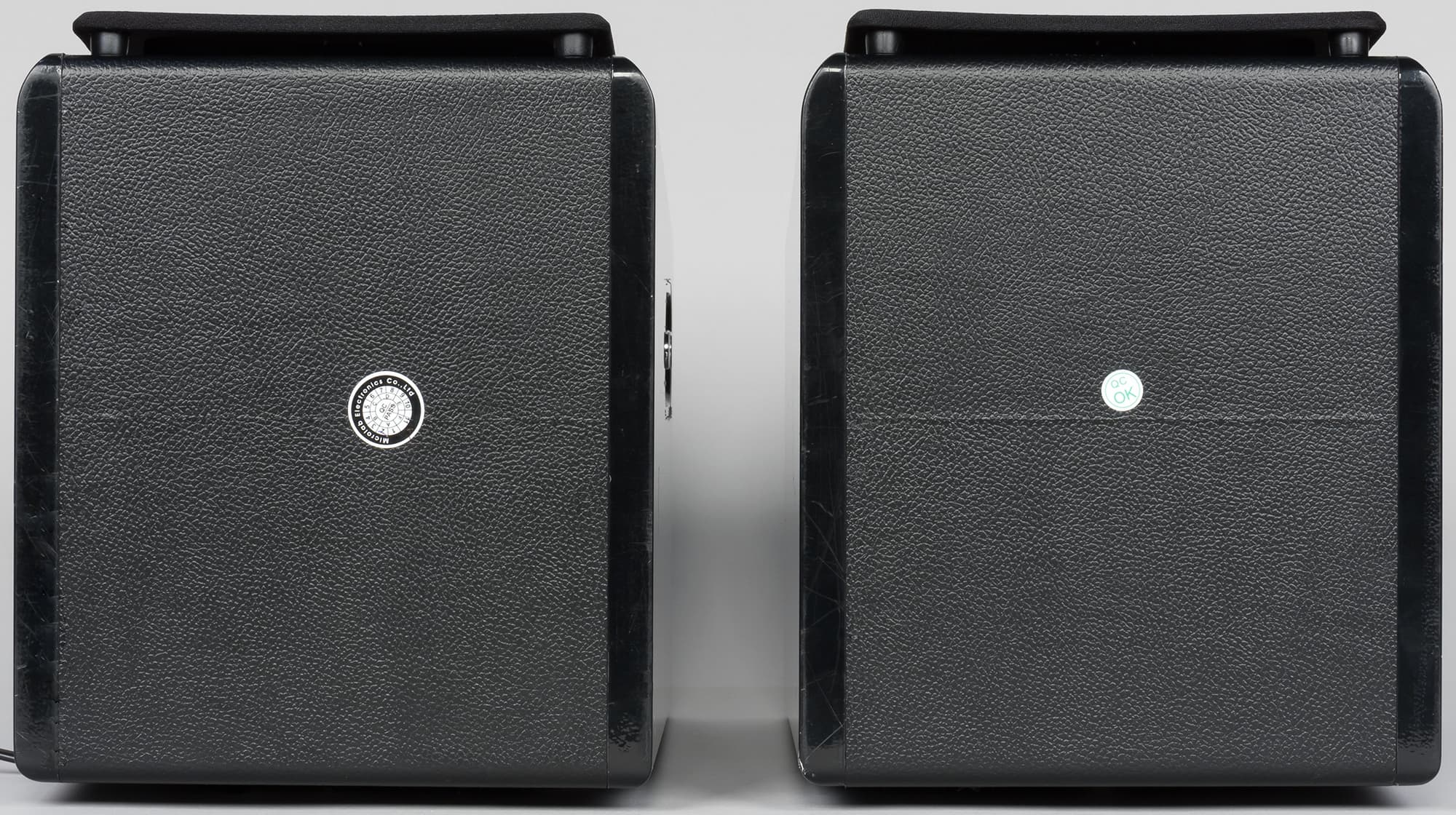 Отверстия фазоинверторов расположены на задней стенке. На пассивной колонке на ней также находится разъем для подключения к усилителю, на активной — разъемы для подключения источников звука, выход для подключения пассивной колонки, клавиша питания, несъемный сетевой кабель.
