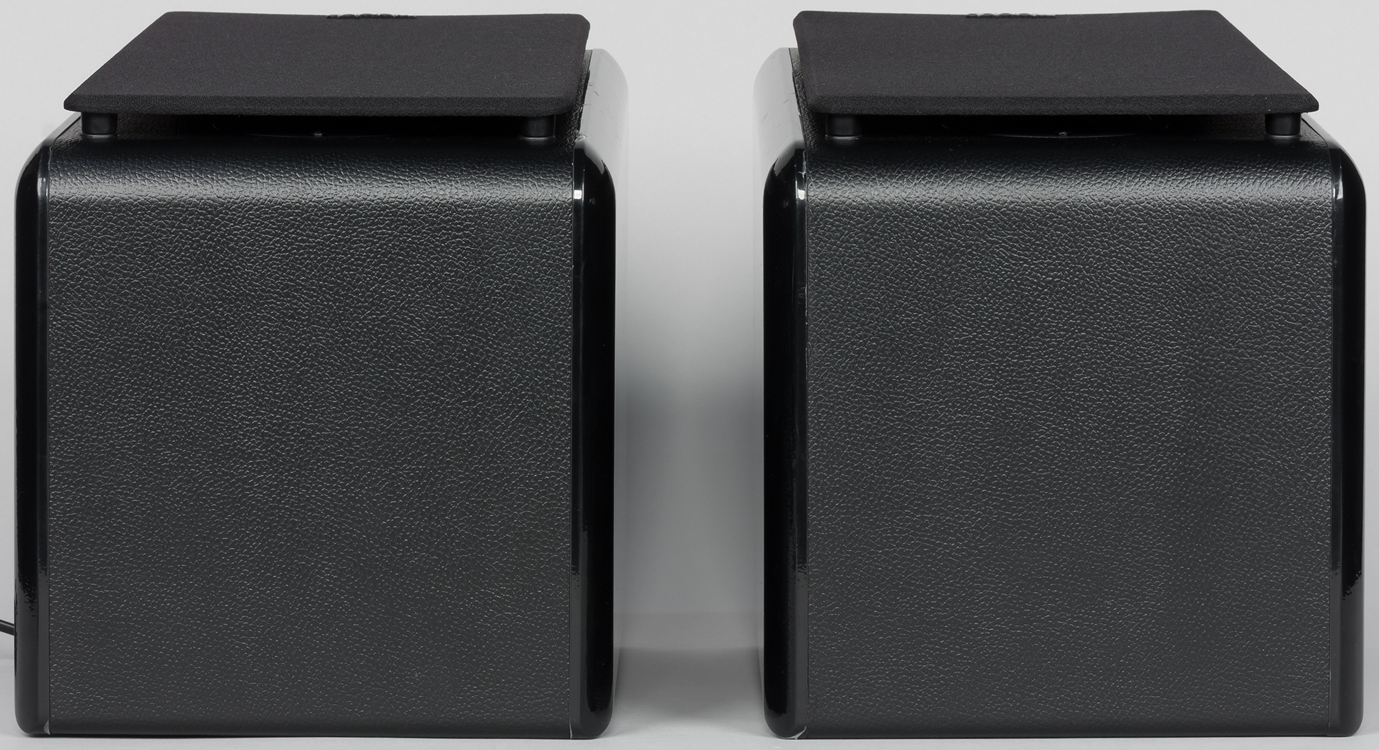 Внешние стороны колонок отделаны черным глянцевым пластиком. Выглядит такая отделка отлично, но к появлению царапин и отпечатков от рук неустойчива.