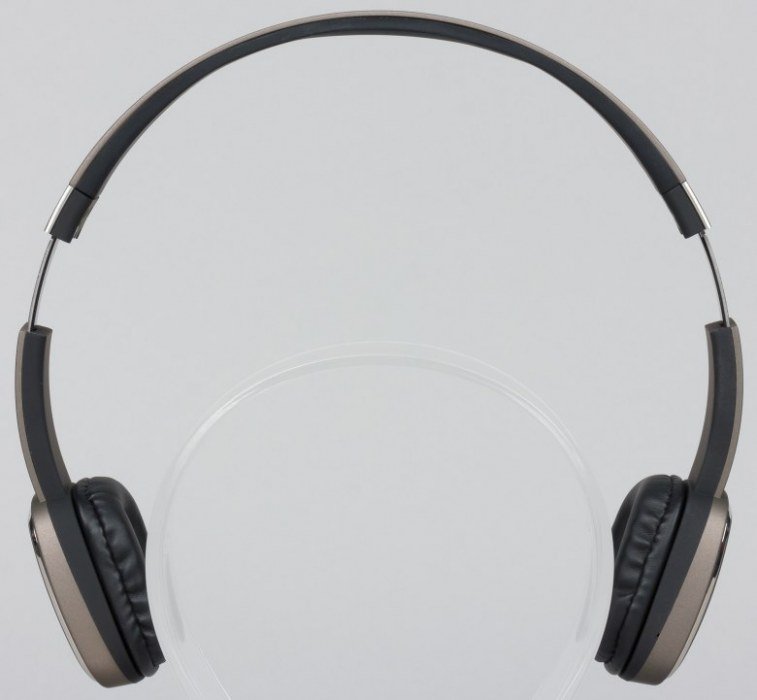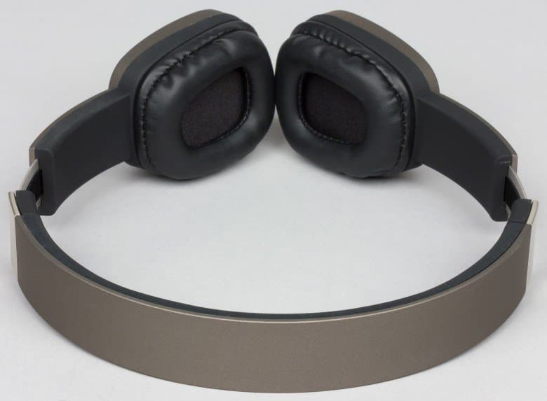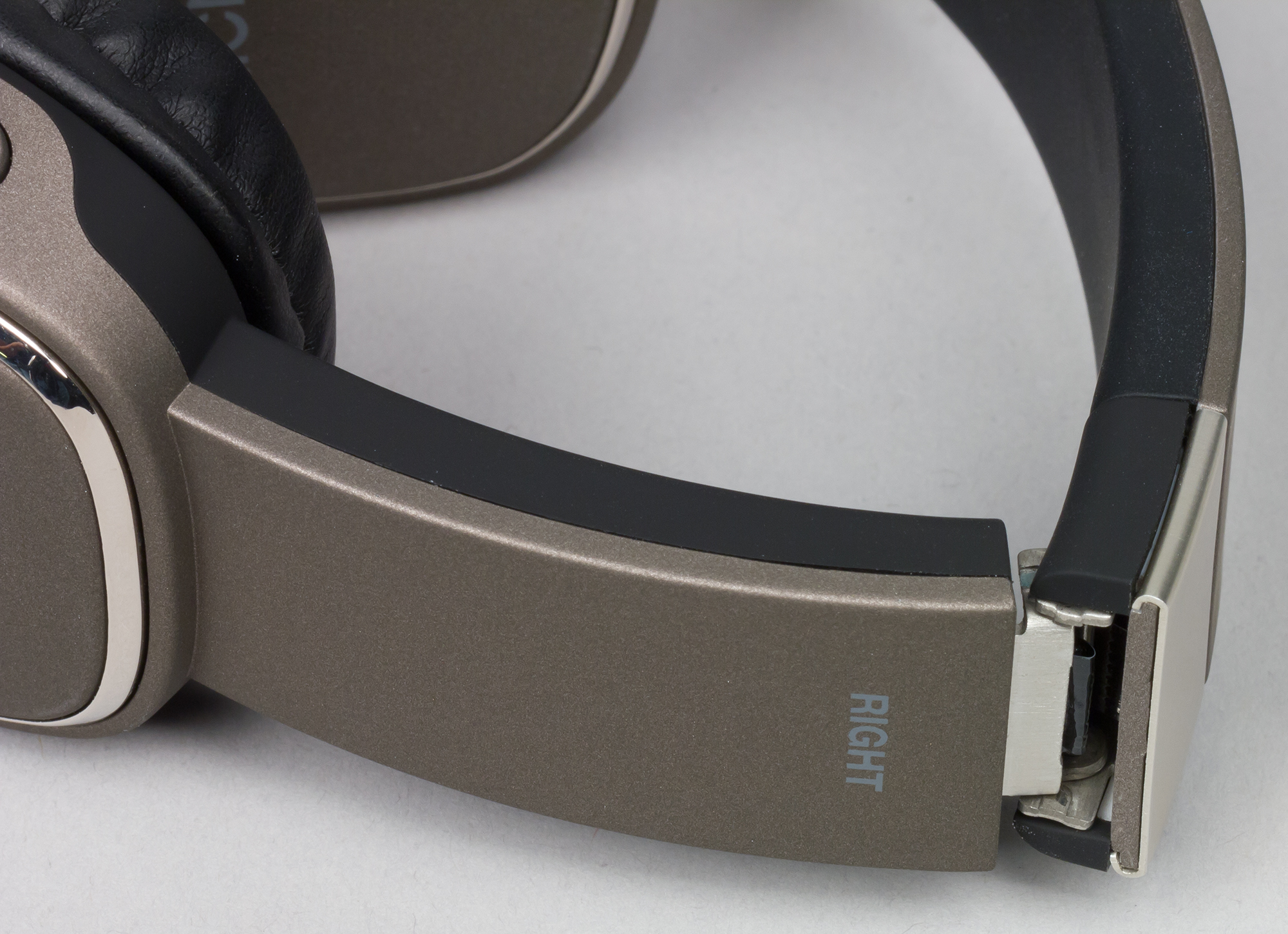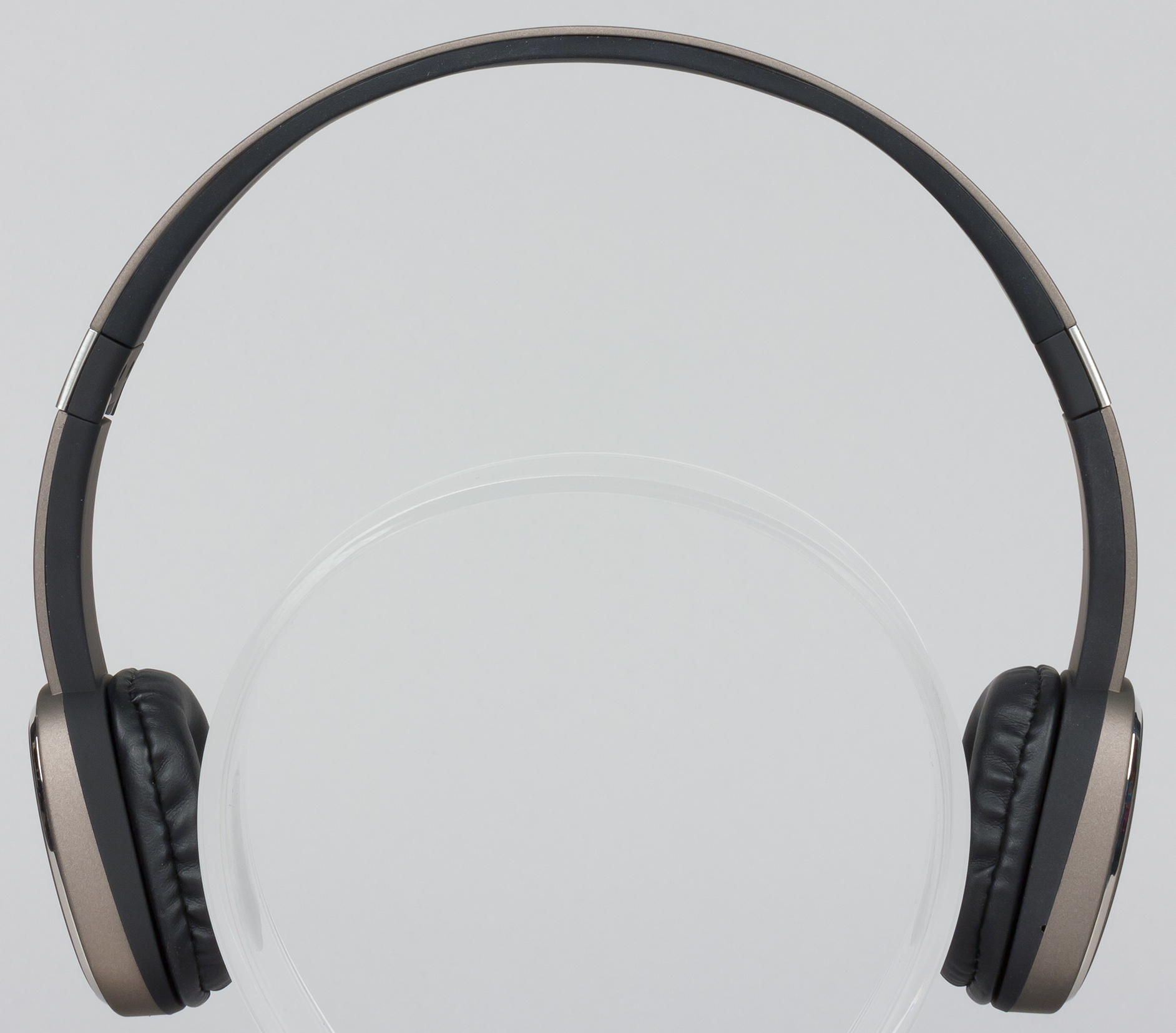 Корпус наушников выполнен из матового, немного шершавого пластика цвета «бронзовый металлик». Дужка имеет внушительную толщину, на внутренней части расположена подушка из черного эластичного полимера.