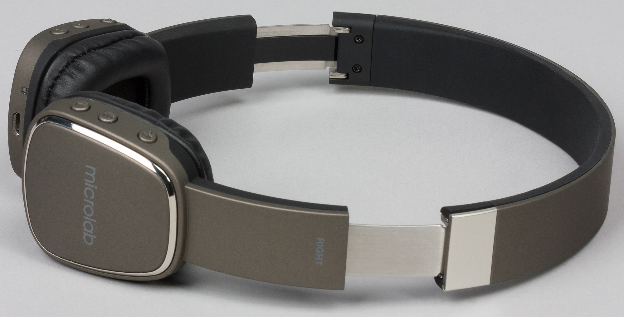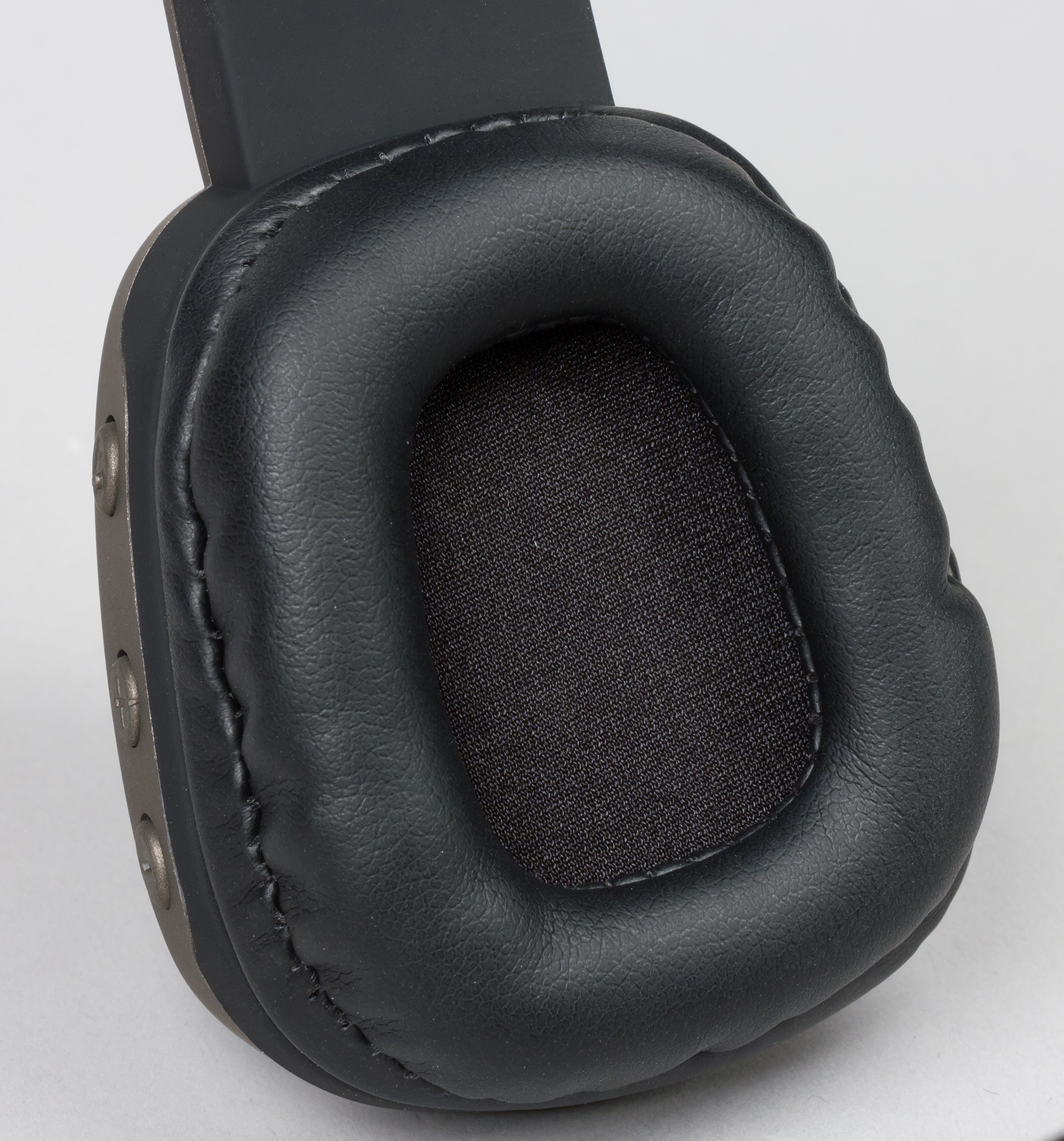 Амбушюры представляют собой трапециевидную подушку из экокожи с мягким наполнителем внутри. Их размер не подразумевает обхвата уха — амбушюры ложатся на ушную раковину. Подобное решение не является самым эргономичным, однако конструкция Microlab T965BT оказалась на редкость удачной: при длительном использовании амбушюры не вызывали дискомфорта.