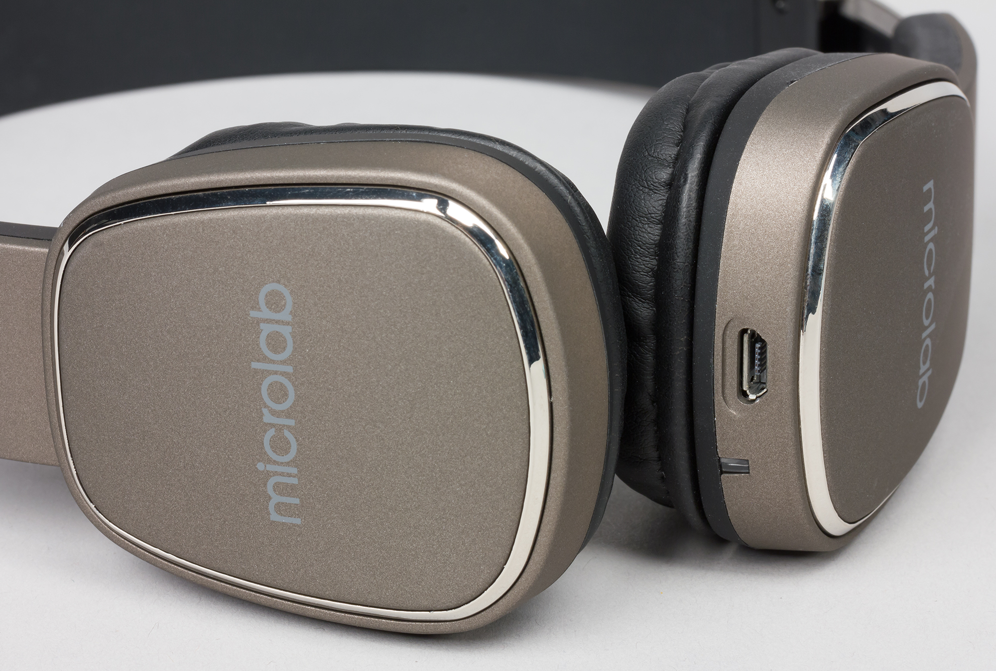 На нижней грани левой чашки расположен порт Micro-USB и двухцветный индикатор.