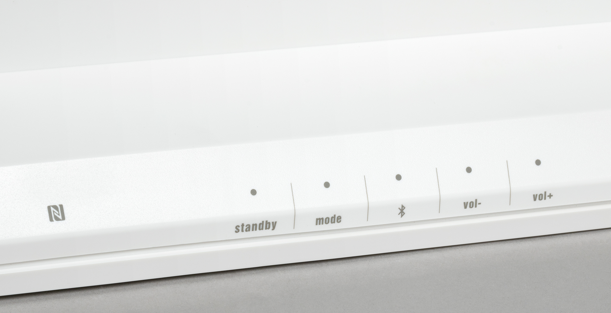 Управление колонкой осуществляется с помощью сенсорных клавиш на верхней панели. Качество их срабатывания мы бы оценили как «среднее» — вроде бы всё хорошо, но все действия осуществляются с неприятной задержкой. Первая кнопка включает режим ожидания, вторая пролистывает активные входы. На третьей нарисован значок Bluetooth, было бы логично предположить, что она нужна для быстрого доступа к самому востребованному способу подключения... Но нет, так она не работает. Да и вообще не очень понятно, что она делает — в инструкции про нее нет ни слова. И вот по таким нюансам безошибочно угадываются недорогие поделки многочисленных китайских фабрик — вроде бы всё симпатичненько, но сделано без особого внимания к деталям.