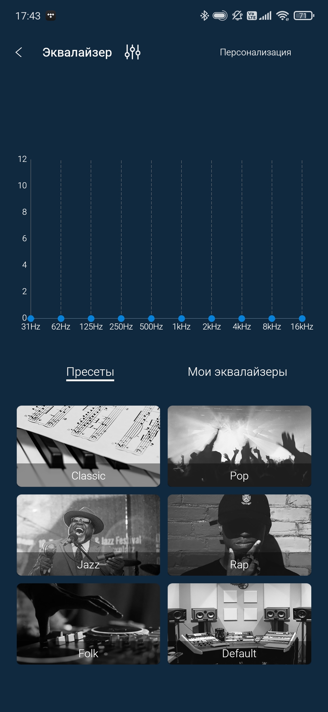 Полноценные десять полос, ряд вполне интересных пресетов — эквалайзер у Noble Audio FoKus Pro замечательный, чуть ли не лучший из тех, что мы встречали у TWS-гарнитур. На работу пресетов мы посмотрим чуть ниже, когда будем обсуждать звучание наушников.