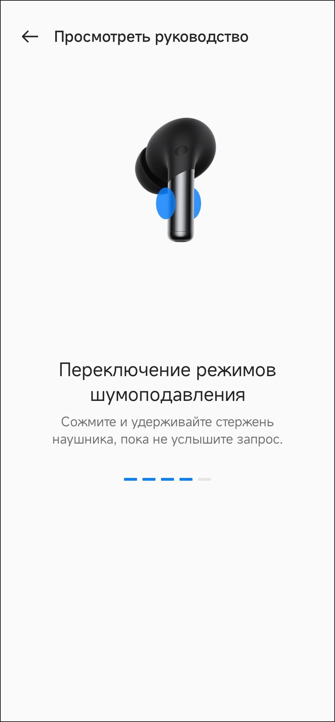 - Длительное нажатие в течение 1 секунды: переключение режима шумоподавления