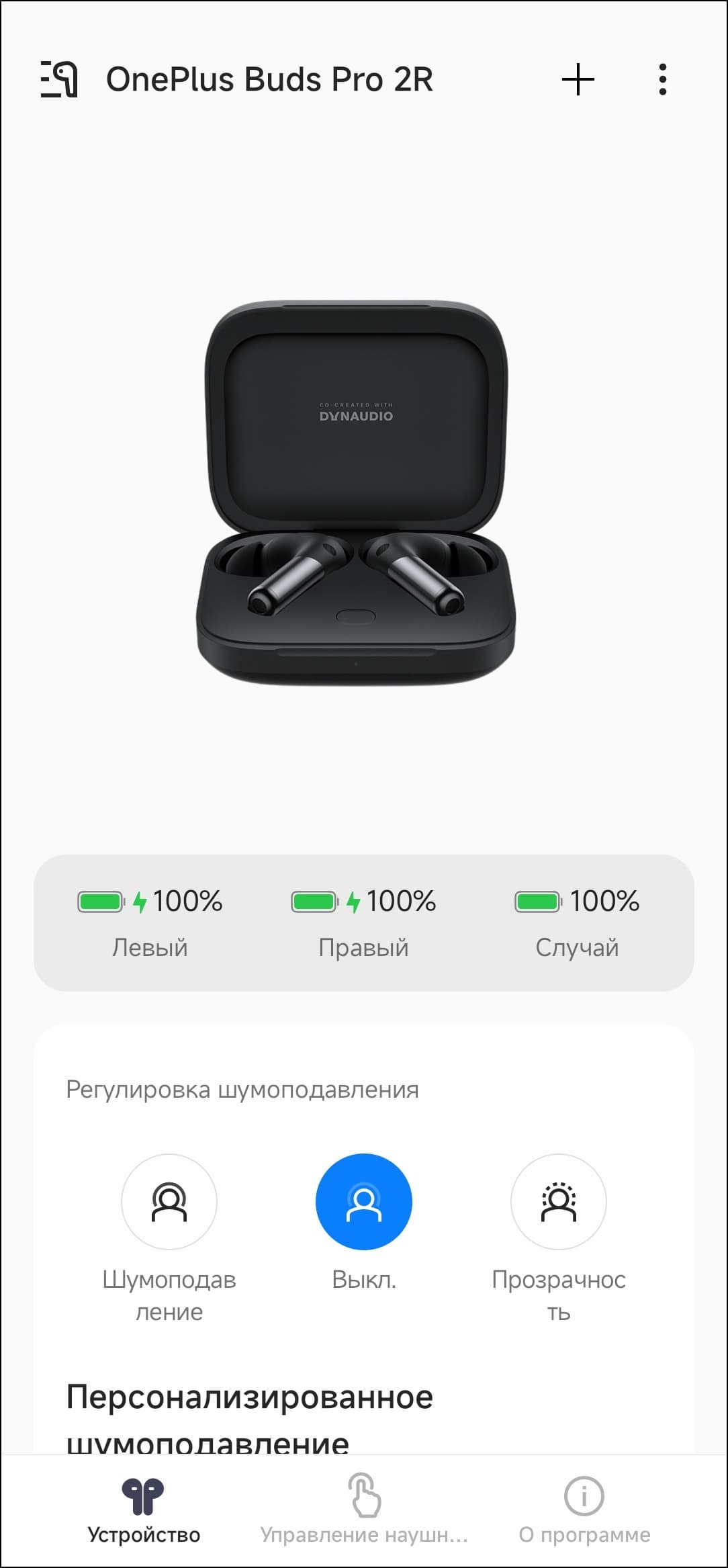 Что же касается активного шумоподавления, то оно у OnePlus Buds Pro 2R просто крайне эффективное — при включении его на максимальную мощность возникает ощущение, что к ушам с двух сторон приложили плотные подушки. Не зря эффективность АШП наушников подтверждена сертификатом независимых аудиторов из TÜV Rheinland. Правда, уже через пару минут появляется еще одно ощущение — что эти самые подушки раздавят голову. Многим пользователям наушников с активным шумоподавлением знакомо это чувство «давления», здесь оно проявляется просто крайне сильно.