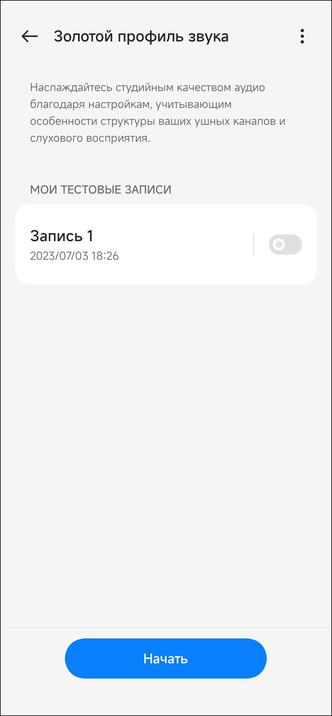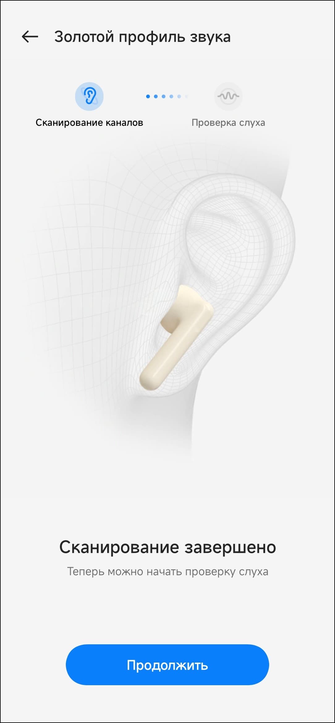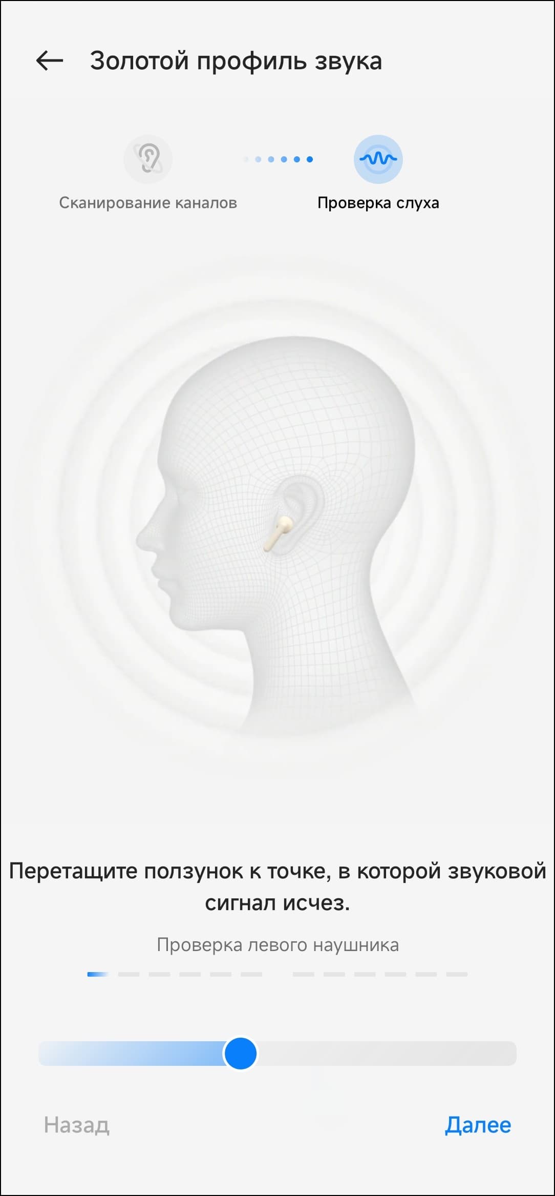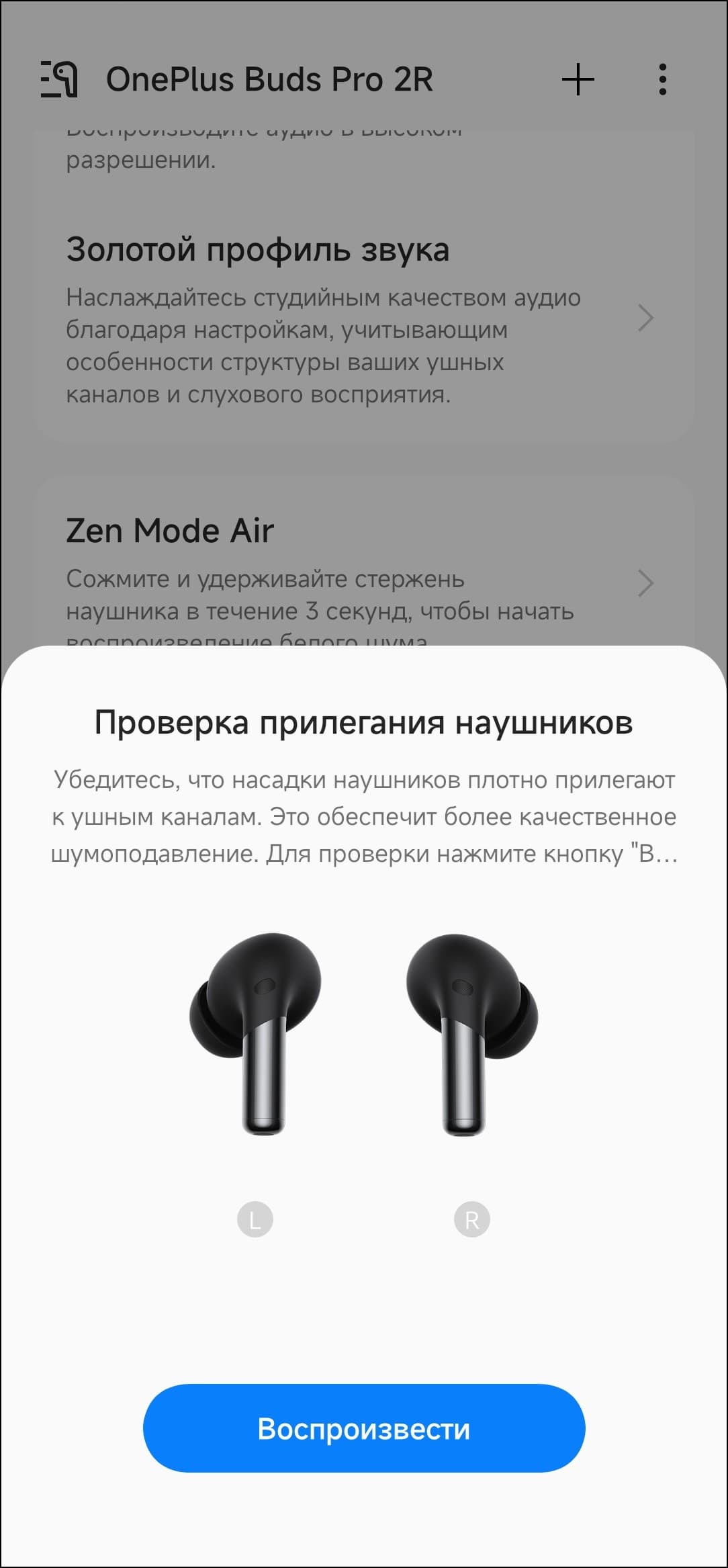 Далее следует еще одна опция подстройки звука OnePlus Buds Pro 2R под пользователя — создание так называемого «золотого профиля звука». После запуска система просит пару-тройку разрешений, потом предлагает подготовиться к проверке слуха.