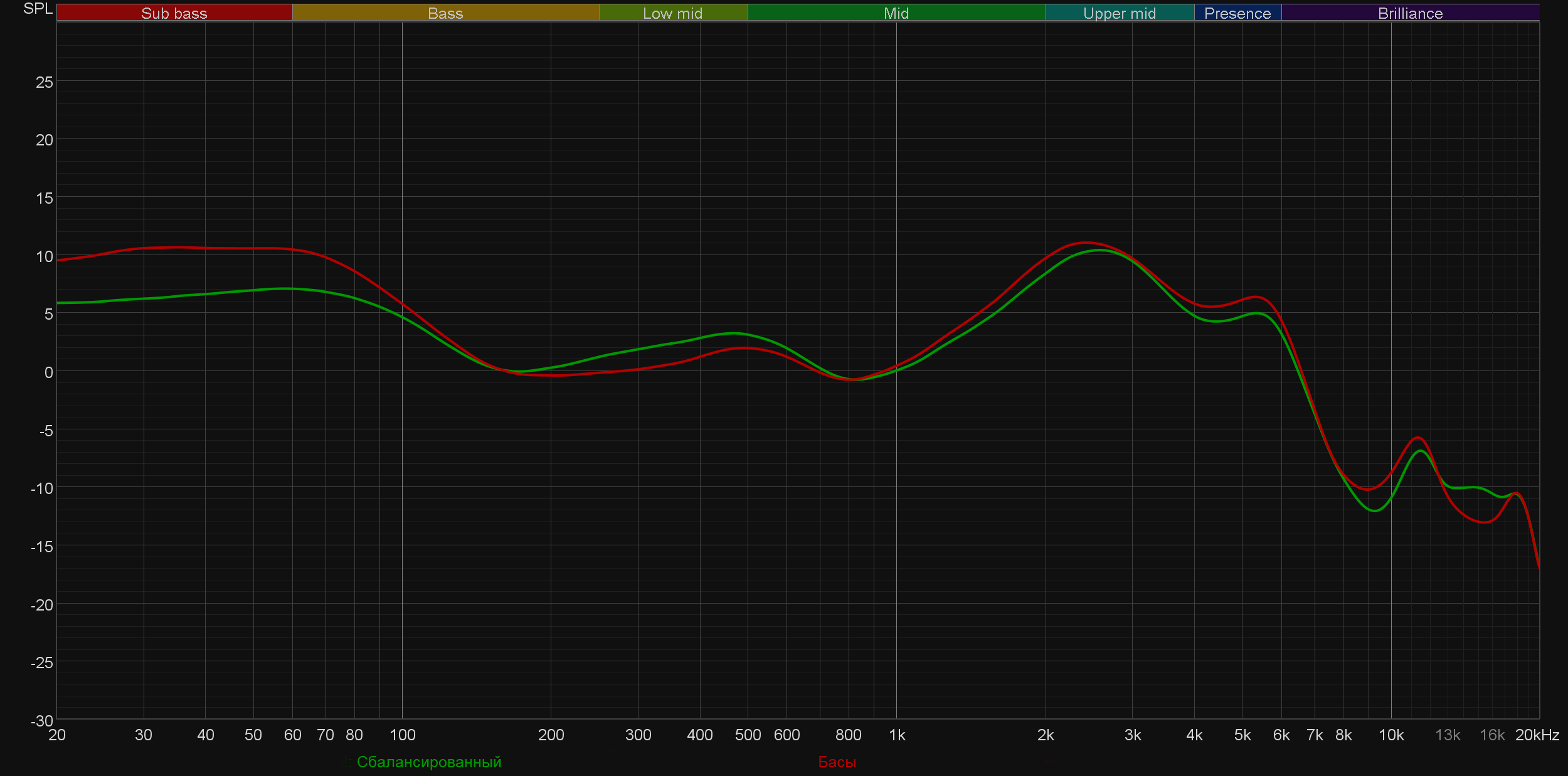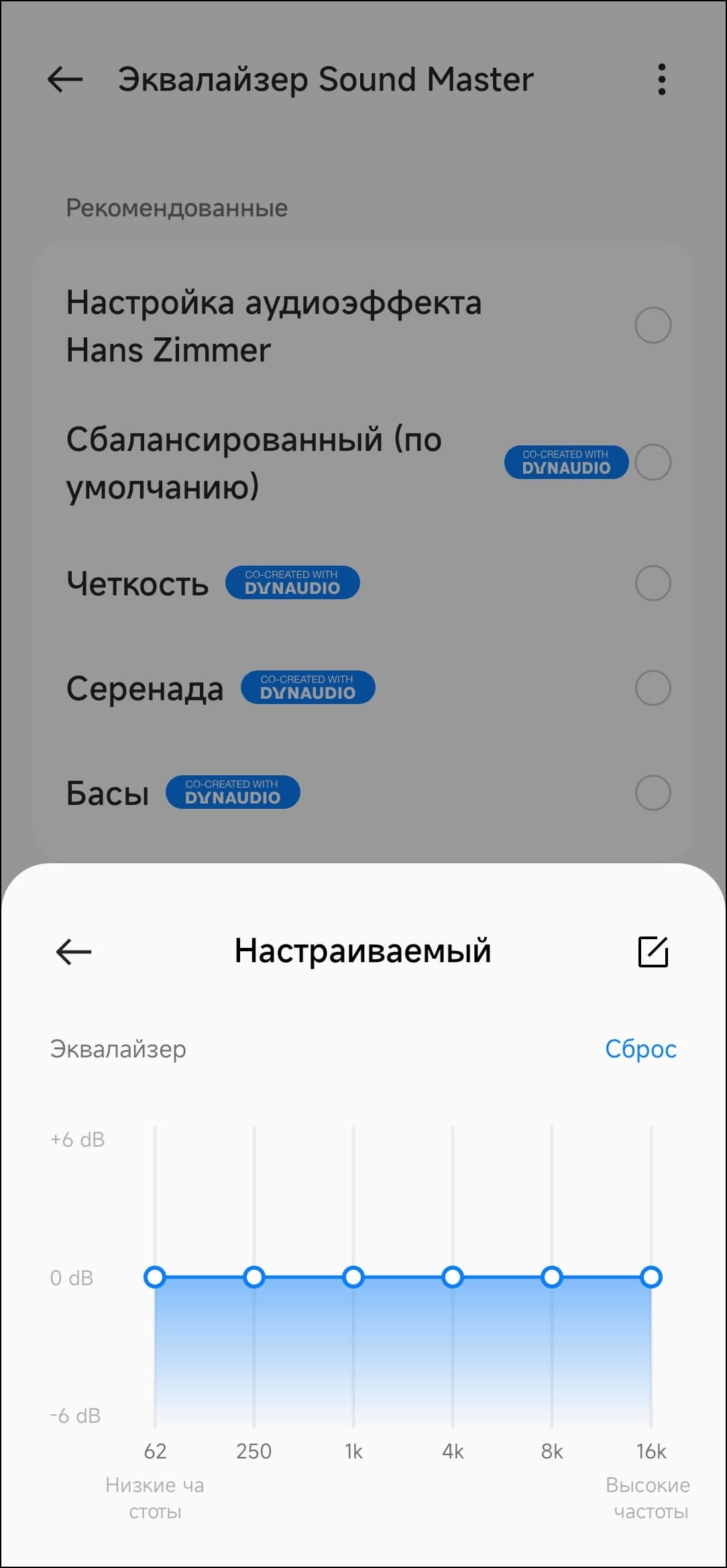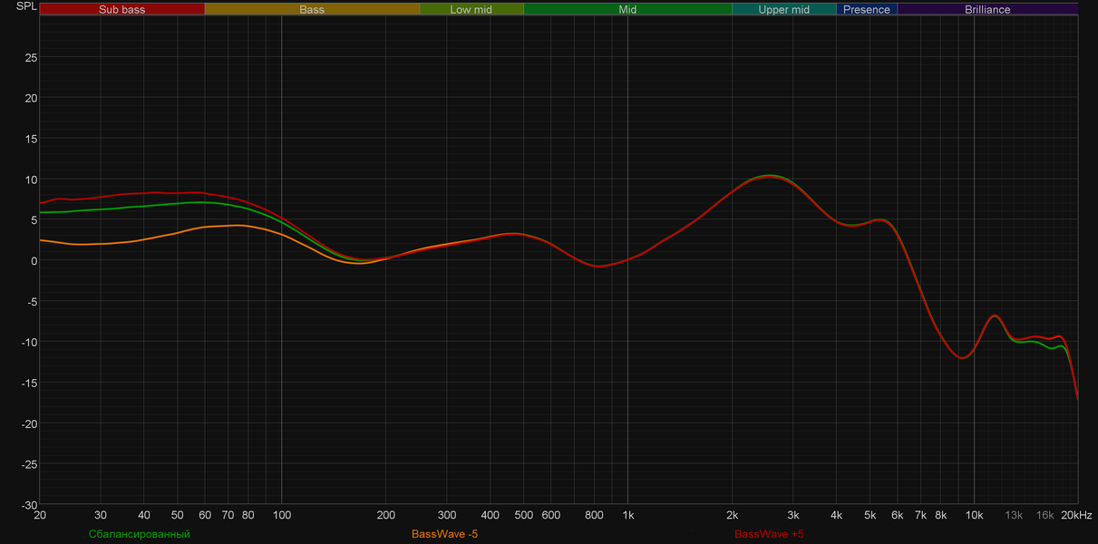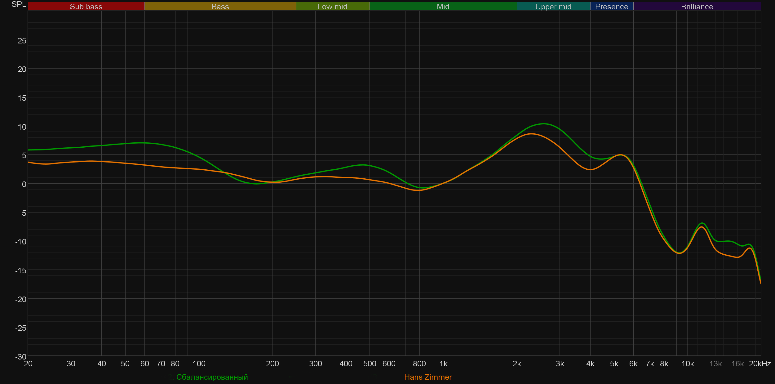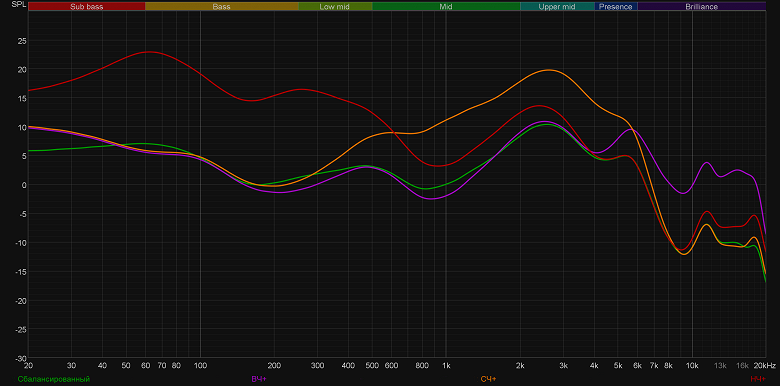Конечно, было очень интересно, что же сделал со звучанием гарнитуры Ханс Циммер. А поступил он довольно предсказуемо: убрал акцент на басу и «горб» в районе нижней середины. При активации названного его именем профиля звук становится максимально сбалансированным и ровным — любителям «мониторного» звучания точно понравится.