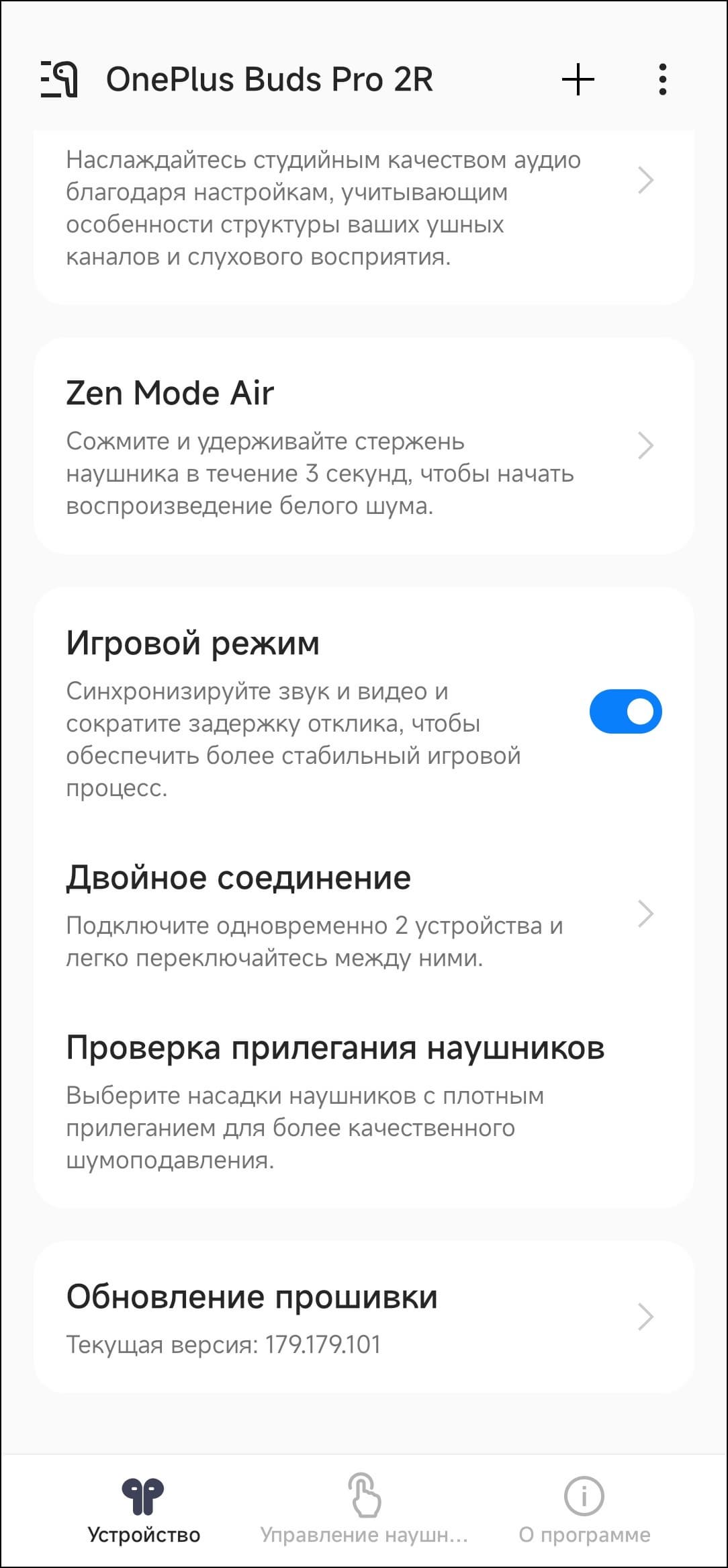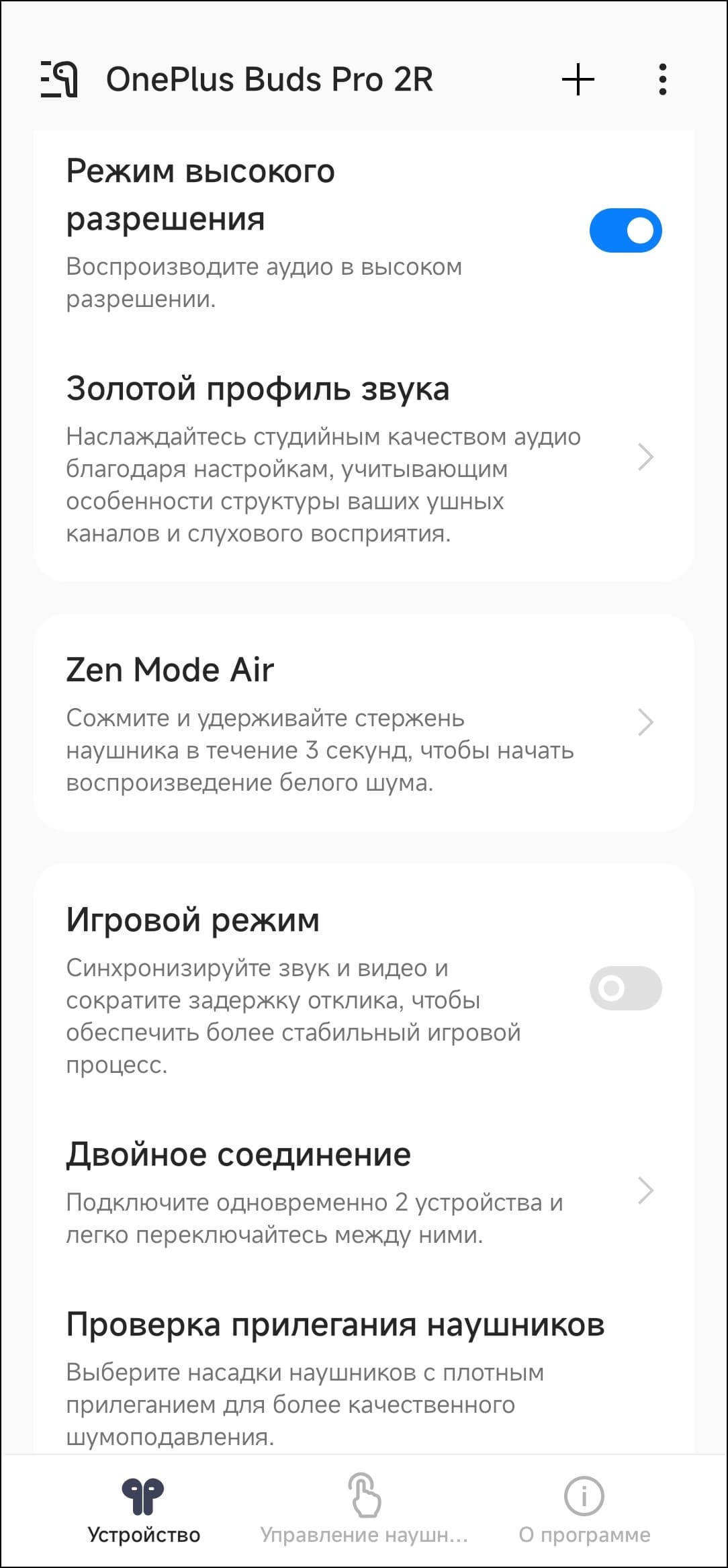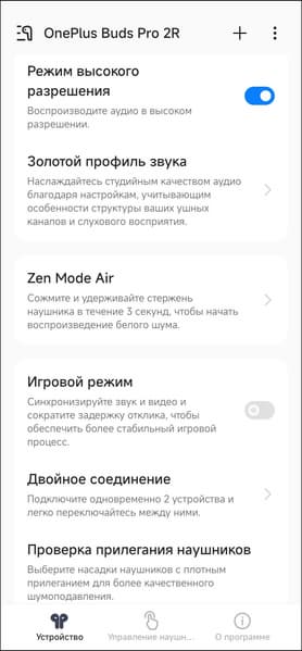 Отдельно нужно заметить, что по умолчанию OnePlus Buds Pro 2R могут активировать кодек AAC, а потом предложить включить более «продвинутый» LHDC. Или не предложить — тогда придется делать это самостоятельно через меню смартфона или приложения для настройки, о котором мы поговорим чуть ниже.