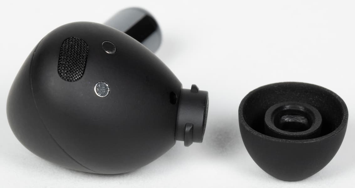 Силиконовые насадки удерживаются на своем месте с помощью заметных выступов на кончиках звуководов. Снять и поставить их обратно чуть сложновато, но вполне возможно.
