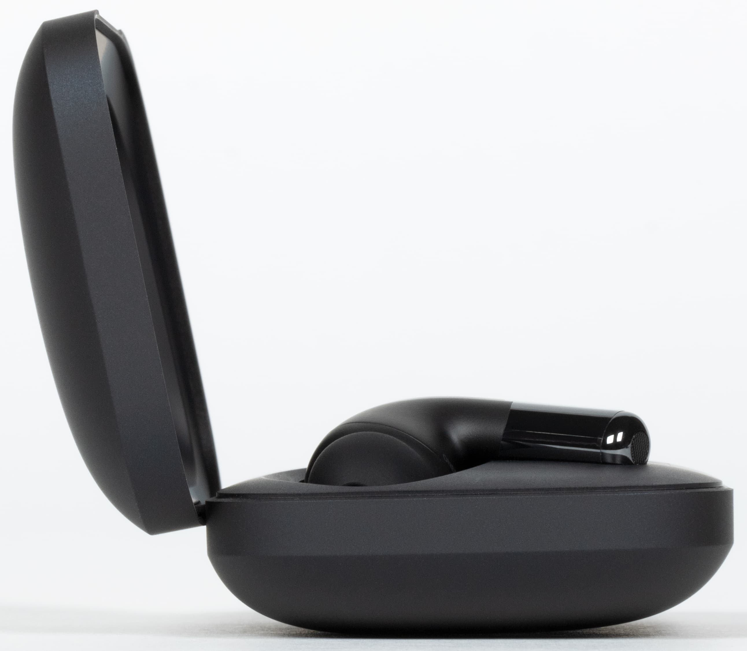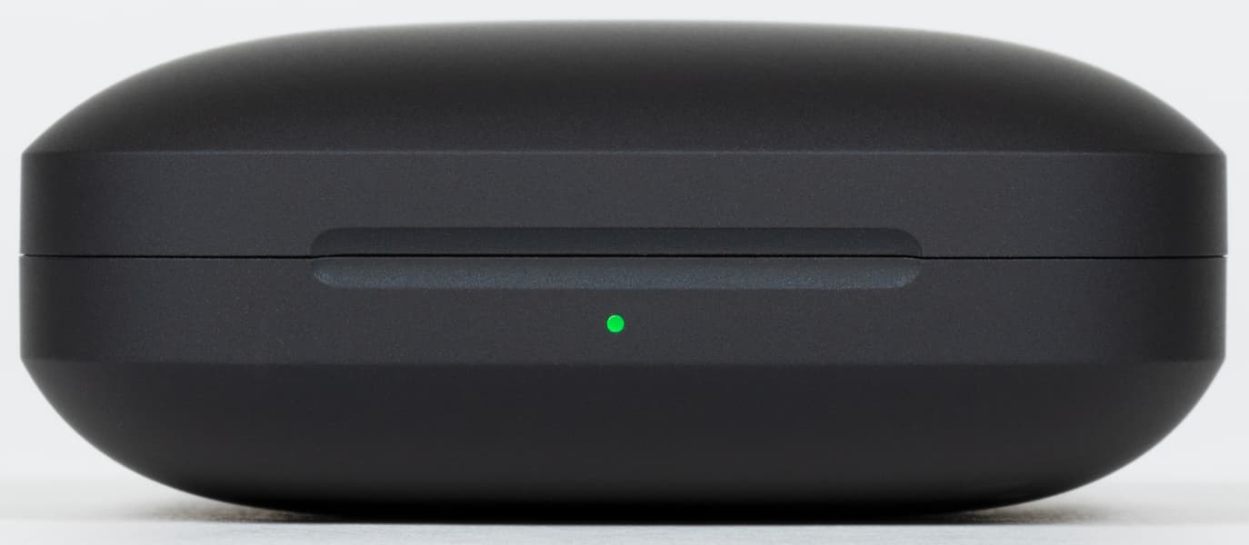 Размеры кейса — 60×48×24 мм, он легко помещается в карман, не говоря уже про разного рода сумки. Матовая поверхность очень приятна на ощупь и устойчива к появлению загрязнений от прикосновений. А вот царапается она легко, внутреннюю часть можно чуть поцарапать даже ножками наушников, это надо иметь в виду.