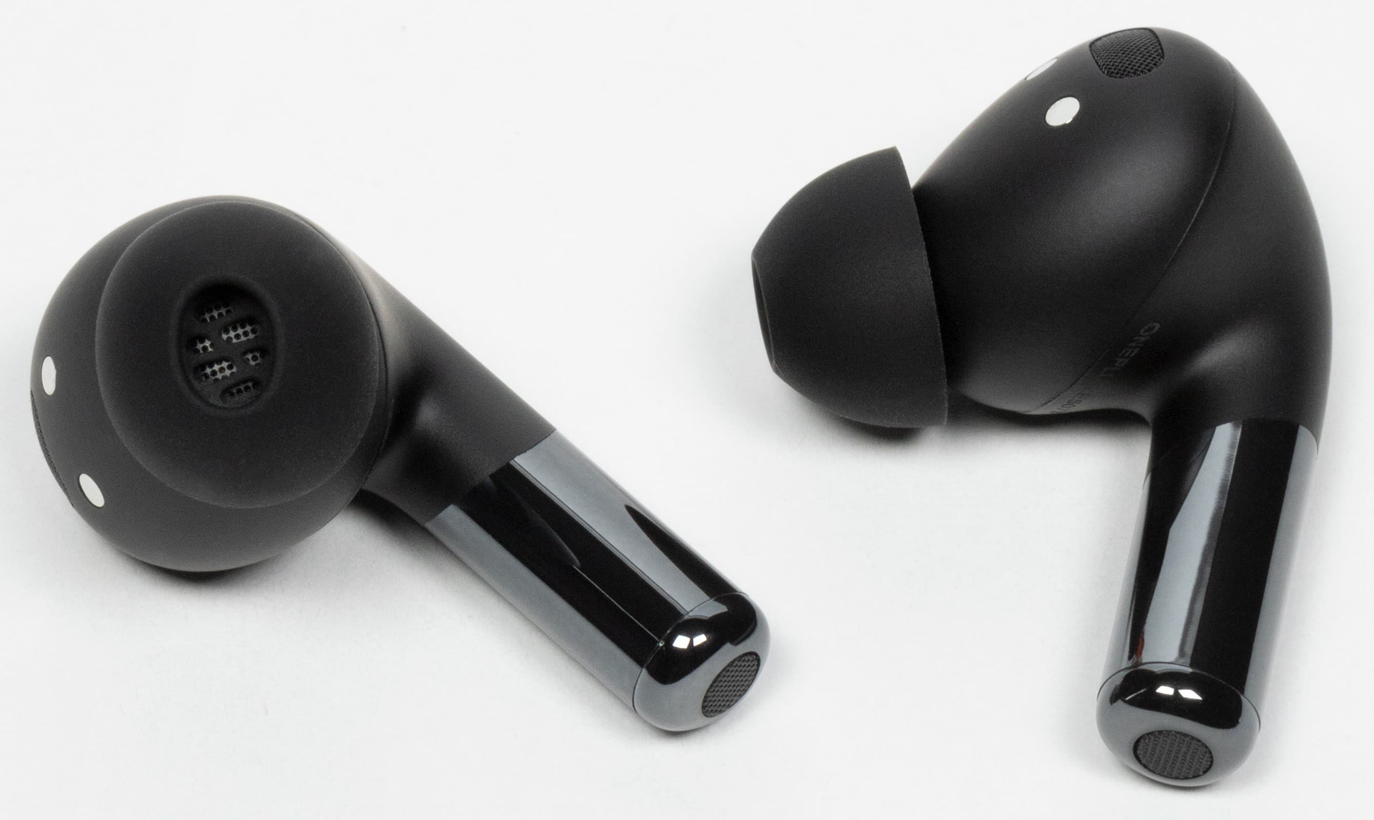 Базовая версия OnePlus Buds Pro 2R поставляется в двух цветах — черном и белом. У «продвинутой» OnePlus Buds Pro 2 есть также зеленый вариант исполнения. Дизайн простой, но изящный — без лишних декоративных элементов.