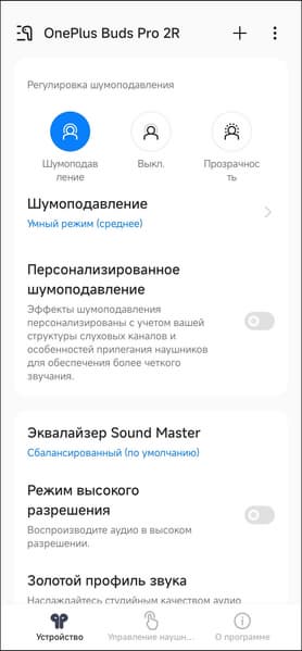 Поддержка LDAC и aptX не предусмотрена, так что владельцам телефонов других производителей придется довольствоваться SBC и AAC. При этом еще и максимум параметра Bitpool у SBC почему-то выставлен на уровне 39, тогда как рекомендованный профиль High Quality подразумевает значение 51. Битрейт AAC тоже «зарезан» на уровне 131 Кбит/с. В общем, полностью оценить возможности OnePlus Buds Pro 2R смогут лишь те, чьи смартфоны поддерживают LHDC — это нужно иметь в виду.