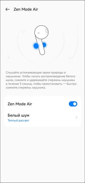 - Длительное нажатие в течение 3 секунд: включение Zen Mode (воспроизведение шумов и звуков природы)