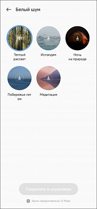А еще наушники могут транслировать различные шумы и звуки природы, причем в автономном режиме — без подключения к источнику. По умолчанию в них загружен саундскейп «теплый рассвет», но с помощью приложения можно загрузить еще четыре на выбор.