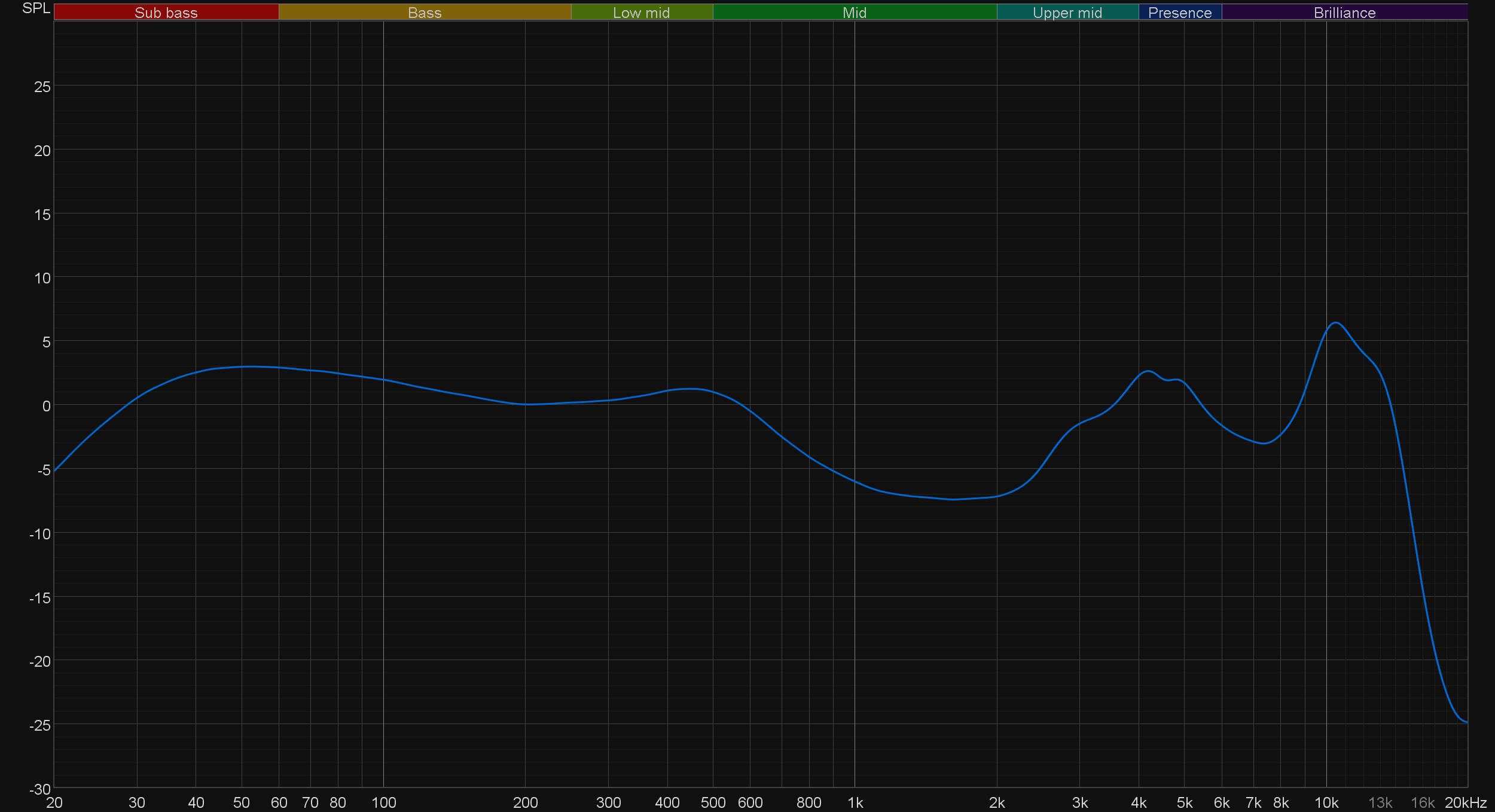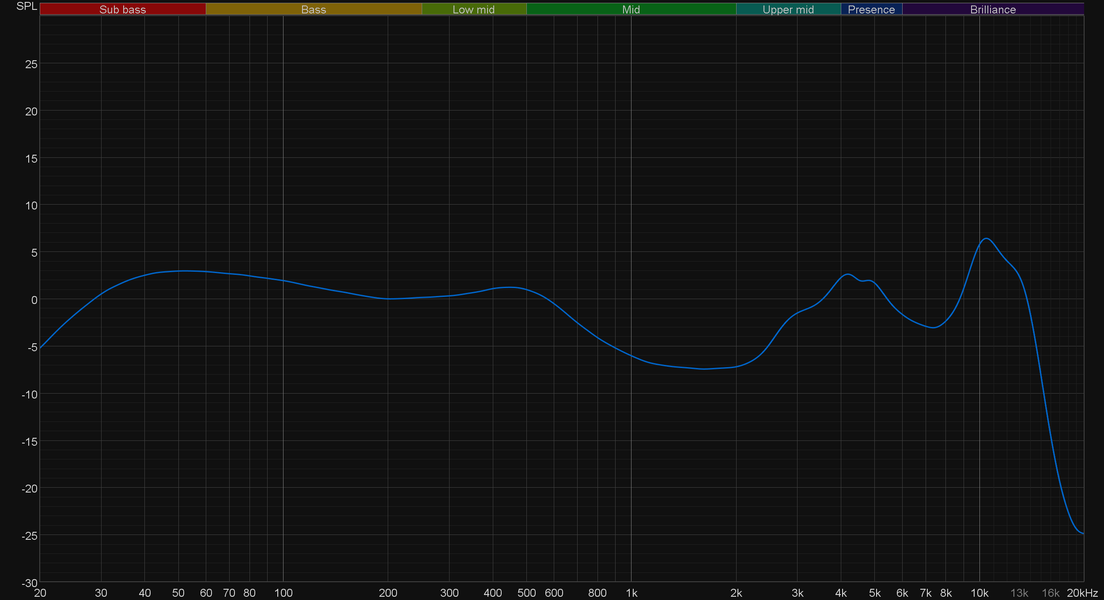 Обилие «глубокого баса», довольно «ровные» НЧ-диапазон и нижняя часть середины, потом заметный провал и акценты на высоких — все как на ладони. Стоит отметить, что «провал» в средних лишь выглядит столь ярко выраженным. На практике он тоже ощутим, но в целом гарнитура звучит интересно и по-своему сбалансированно.