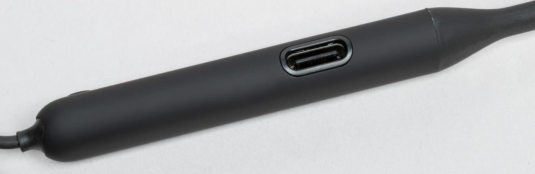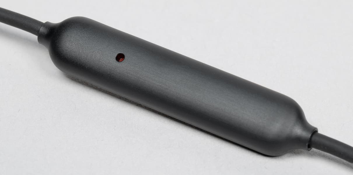 На кабеле слева находится небольшой трехкнопочный пульт управления. Он очень компактный — всего 40 мм в длину, кнопки нажимаются с усилием чуть выше среднего и ощутимым мягким кликом.