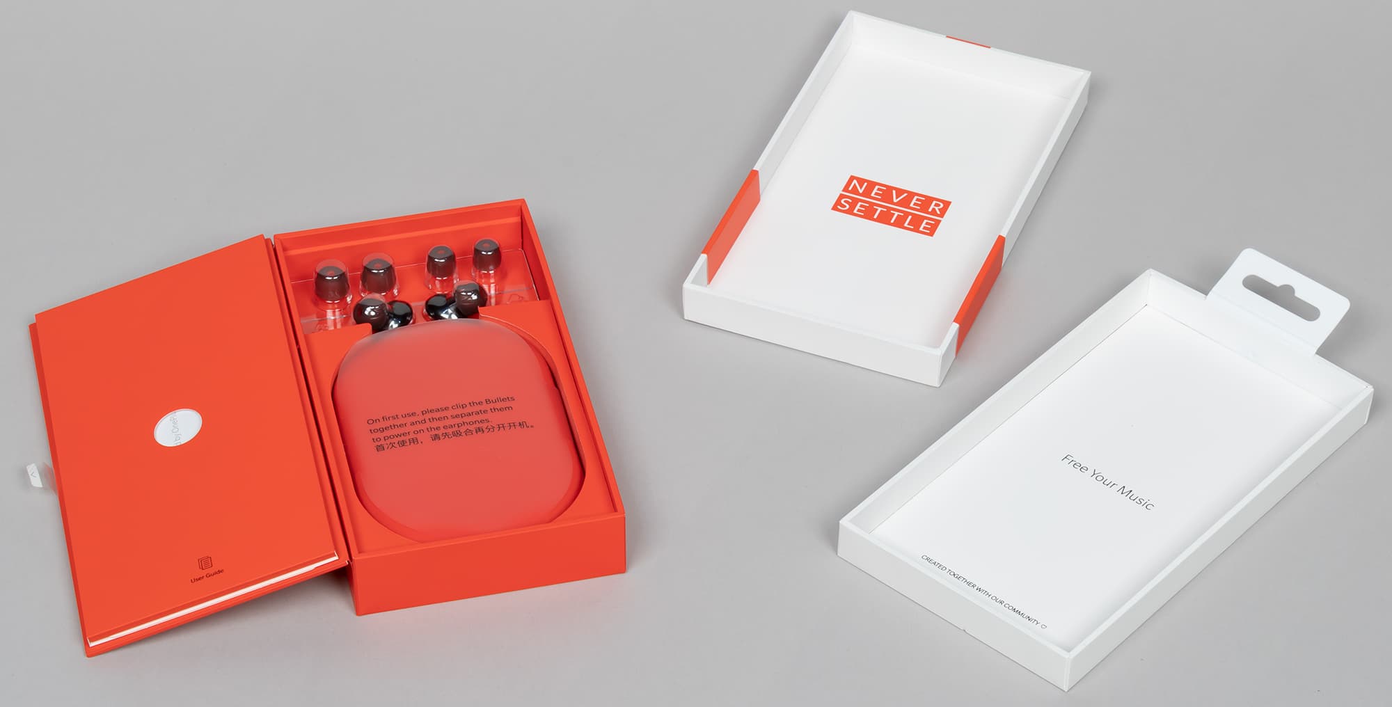 Открыв верхнюю коробку, пользователь обнаруживает еще одну — оранжевую с откидной крышкой. Большая часть гарнитуры в упаковке размещена внутри кейса для переноски, сами наушники и комплектные амбушюры закреплены в прозрачном пластиковом ложементе.