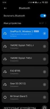 Включение гарнитуры происходит сразу после разъединения удерживаемых магнитами чашек. Первым делом она пытается подключиться к «знакомым» устройствам, а если не находит их — активирует режим сопряжения. Принудительно включить его можно долгим нажатием кнопки на левой стороне обода. С телефонами OnePlus поддерживается упрощенное подключение, да и с остальными ничего сложного: выбираем гарнитуру в соответствующем меню гаджета, соглашаемся с подключением — и готово.