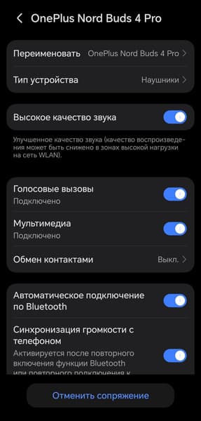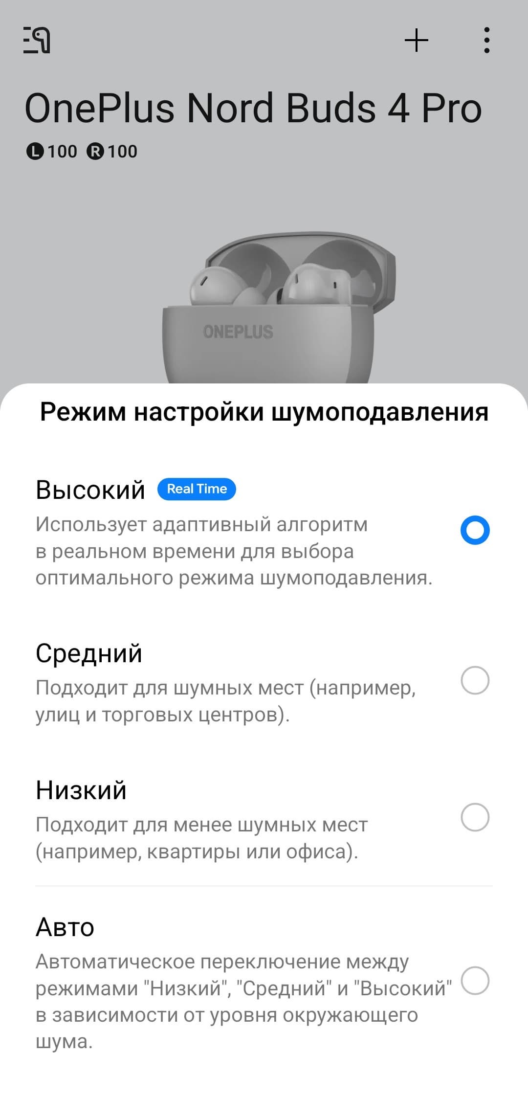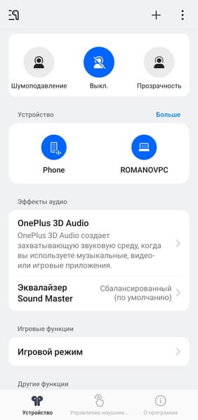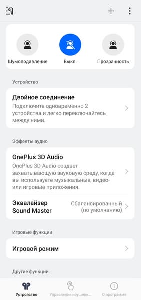 В описании OnePlus Nord Buds 4 Pro сказано, что Bluetooth 6.0 обеспечивает крайне низкую задержку при передаче звука, но тем не менее в приложении для управления наушниками можно активировать игровой режим. Нам он за все время тестирования так и не понадобился — рассинхронизации звука и изображения не было ни при просмотре видео, ни в играх, в том числе довольно требовательных к ресурсам смартфона.