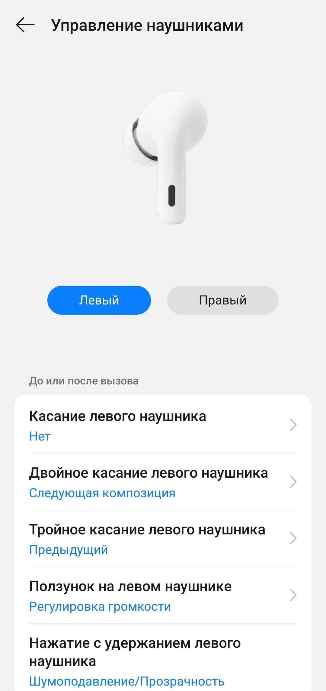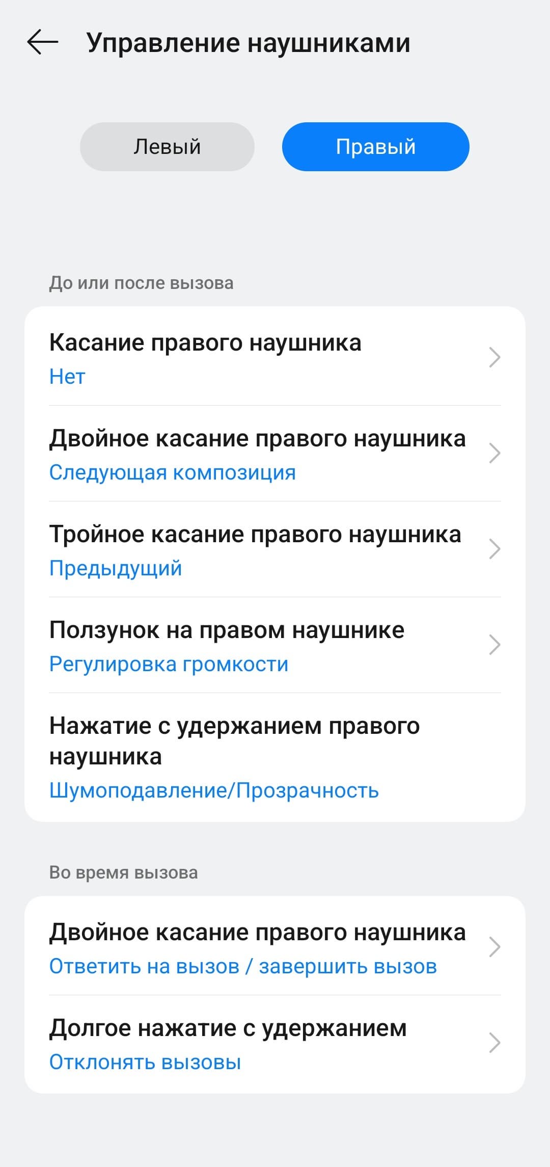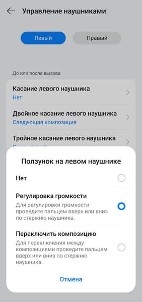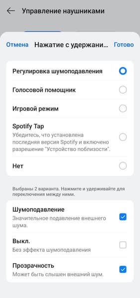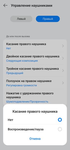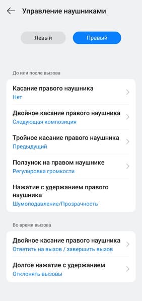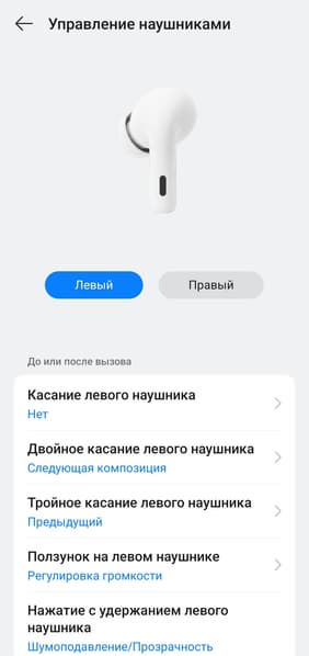 Управление на правом и левом наушнике настраивается отдельно, при этом список доступных функций одинаковый. В общем, настолько гибкой настройки мы не встречали уже очень давно — профиль можно максимально адаптировать под свой вкус, разработчикам за это отдельный респект.