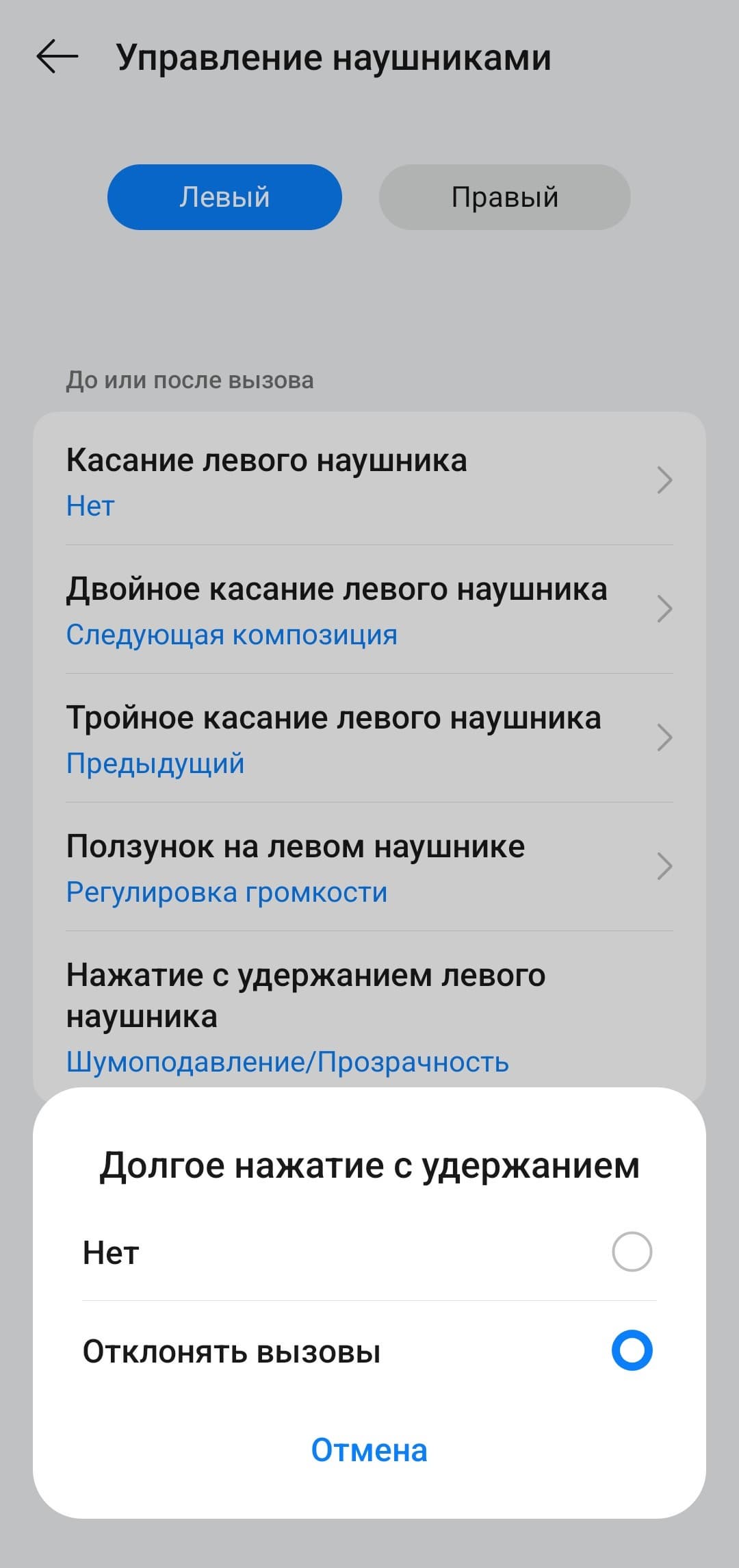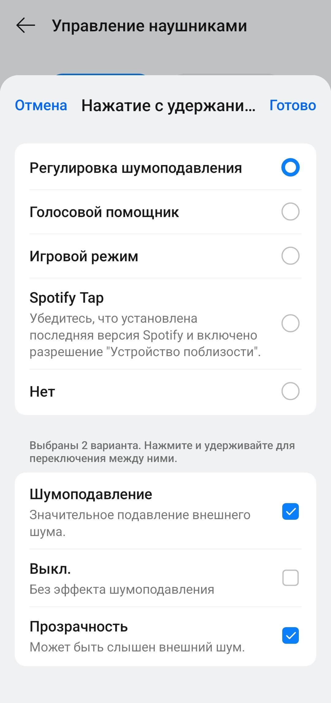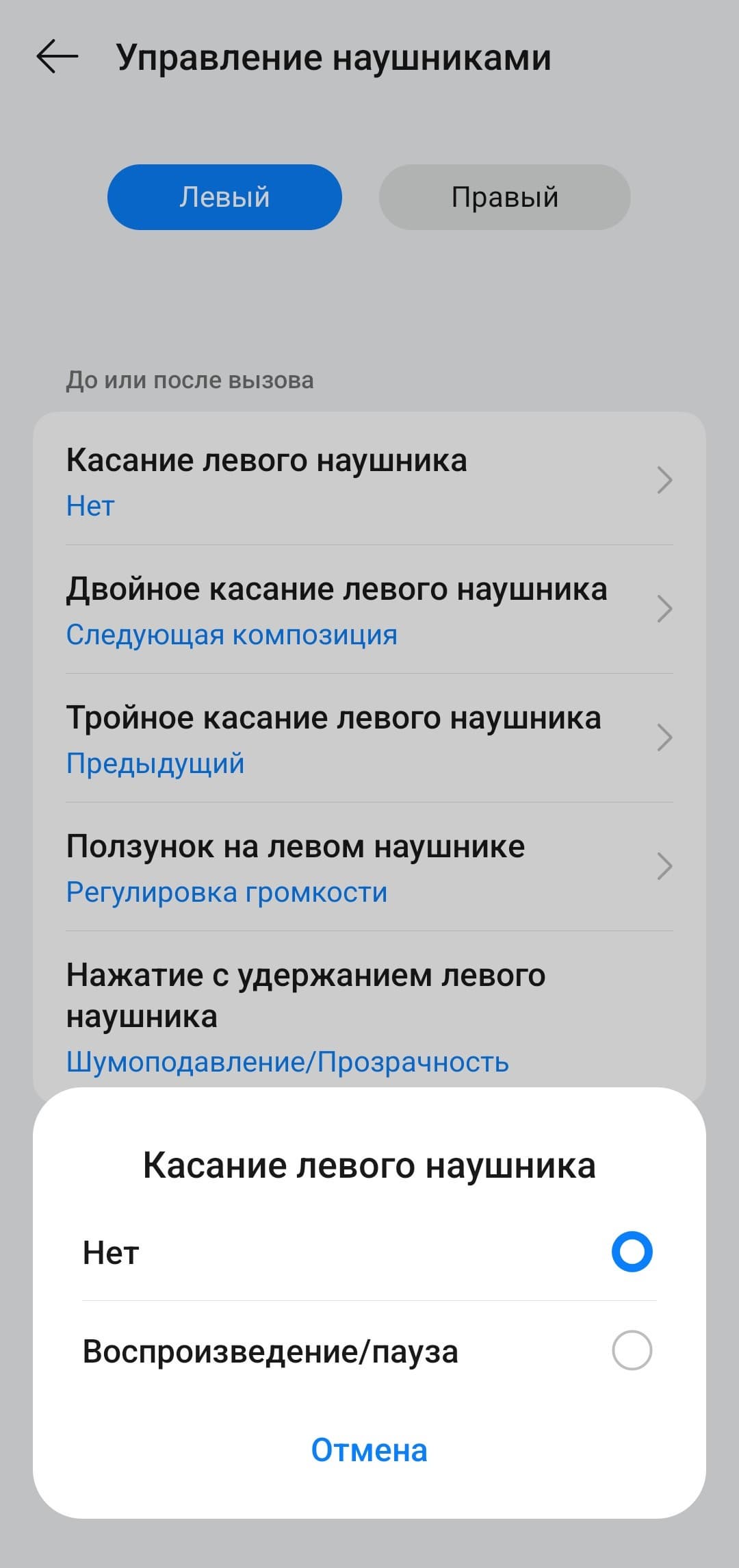 Управление на правом и левом наушнике настраивается отдельно, при этом список доступных функций одинаковый. В общем, настолько гибкой настройки мы не встречали уже очень давно — профиль можно максимально адаптировать под свой вкус, разработчикам за это отдельный респект.