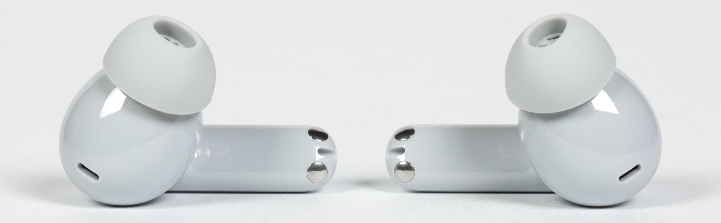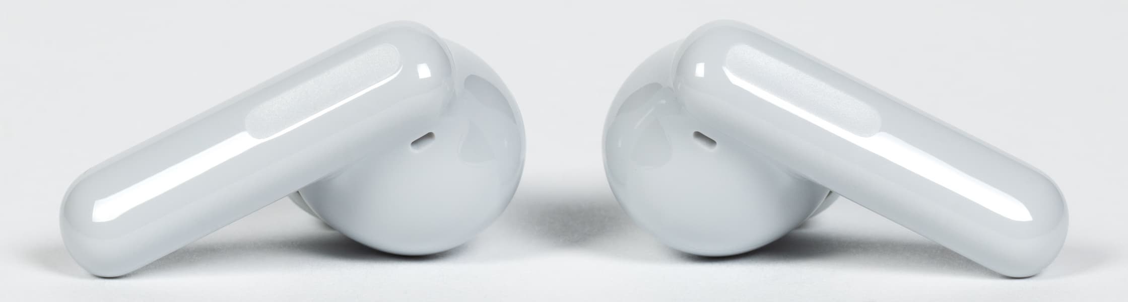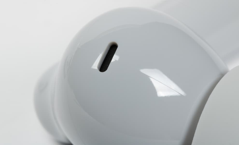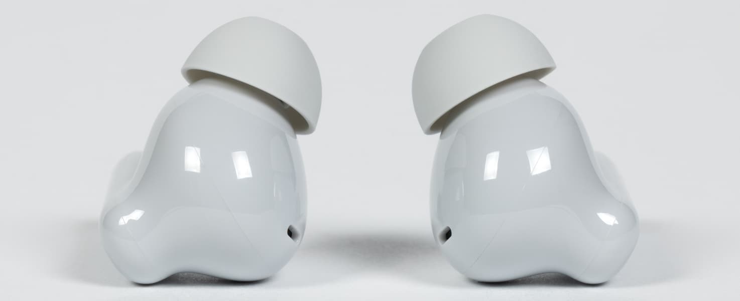 Внешняя часть ножек оснащена сенсором, зона которого отмечена небольшим углублением с шероховатой текстурой. Оно хорошо ощущается на ощупь и делает управление устройством заметно комфортнее.