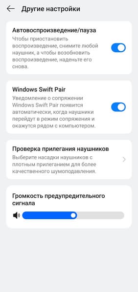 Поиск потерявшихся наушников организован стандартным образом: наушники воспроизводят громкий высокочастотный сигнал, благодаря которому их можно отыскать, если вокруг более или менее тихо. Также доступна возможность отключения автопаузы и функции Windows Swift Pair.