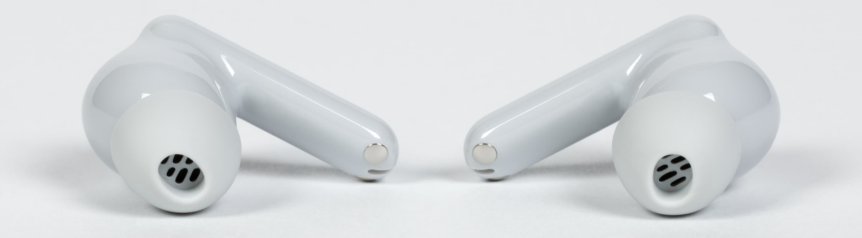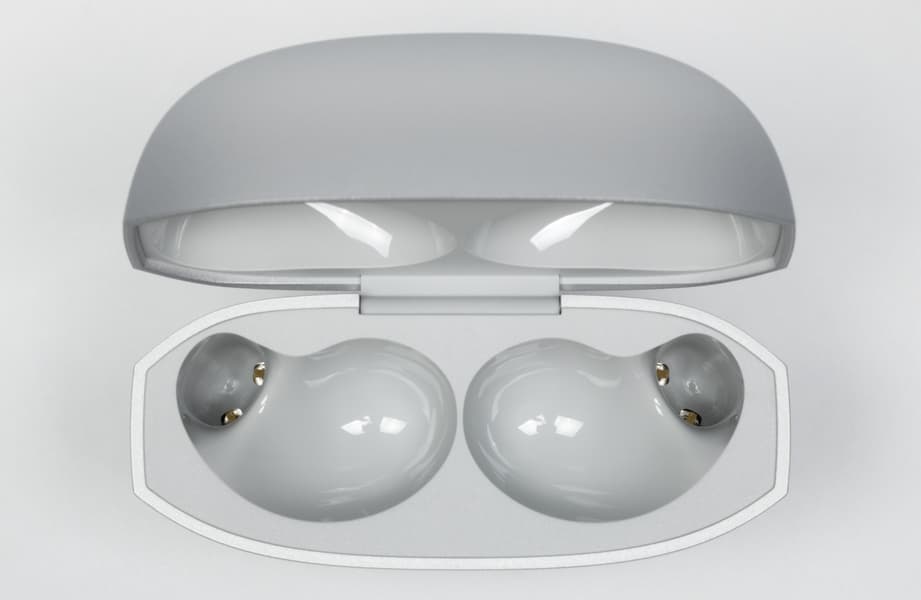 Длина ножек от основания округлой части составляет 16 мм, поэтому за распущенные волосы, поднятый воротник или шарф они цепляться не будут. От обозначений правого и левого наушника производитель решил отказаться, так что ориентироваться придется по форме и положению в кейсе.