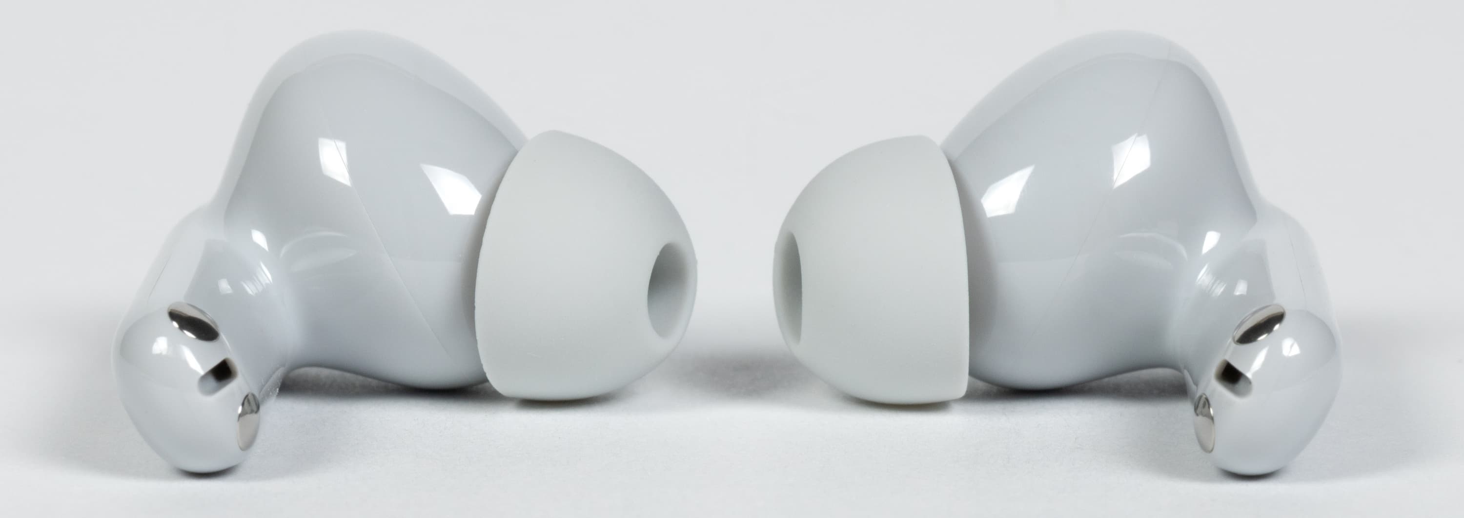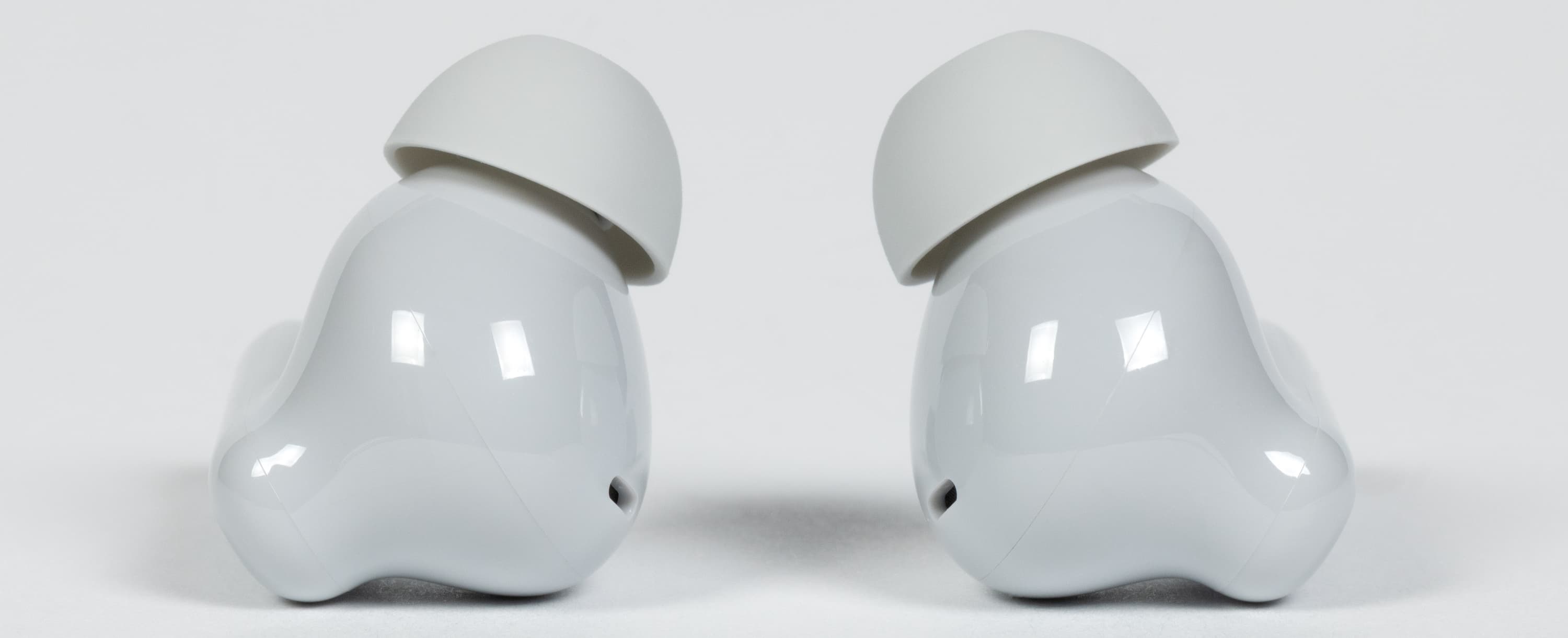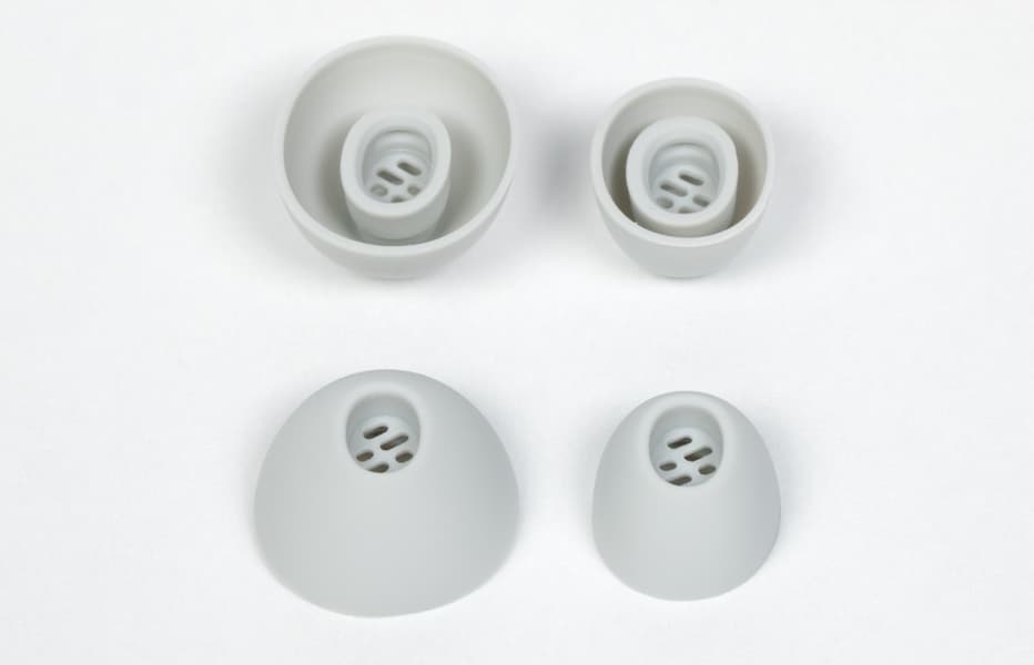 Силиконовые насадки удерживаются парой сравнительно массивных выступов на конце звуковода, но при этом без лишних усилий снимаются и ставятся на место.
