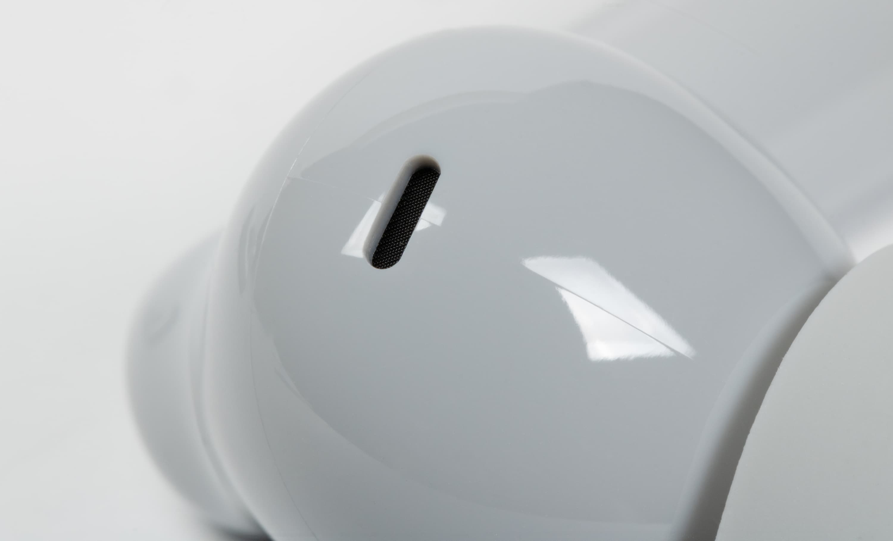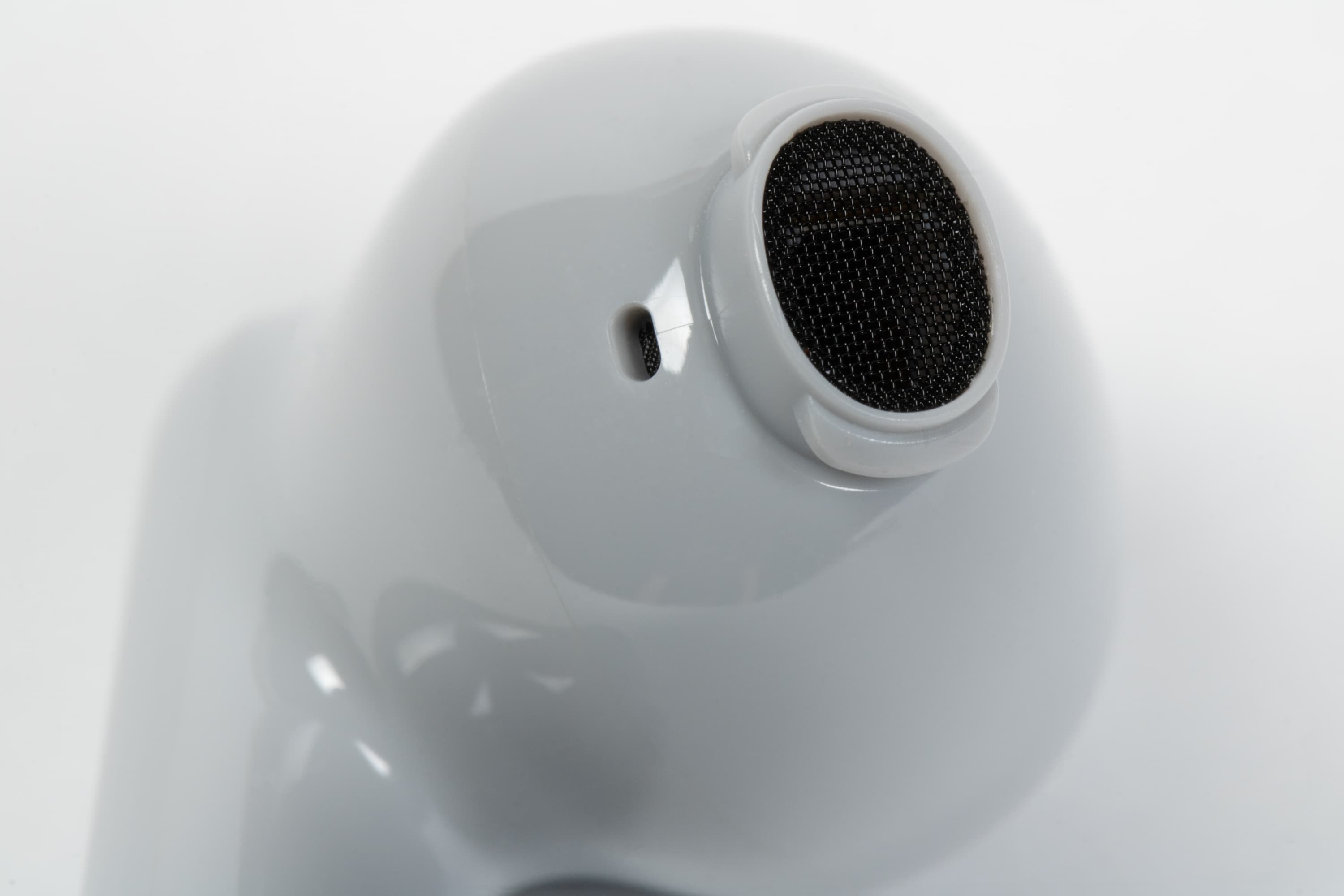 Отверстие звуковода прикрыто сеткой, слегка утопленной внутрь — очищать ее при необходимости будет сложновато. К счастью, делать это придется не слишком часто: собственная сетка силиконовых насадок довольно неплохо задерживает загрязнения. Рядом расположено компенсационное отверстие, которое служит для сброса избыточного давления при работе динамического драйвера.
