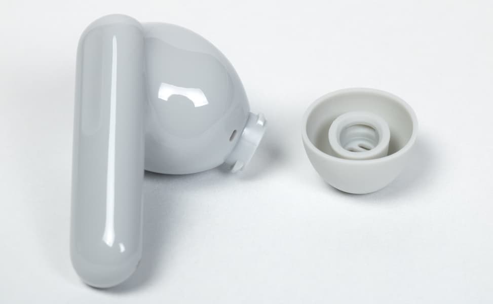 Поверхность у наушников глянцевая — следы от прикосновений появляются легко и сразу бросаются в глаза, зато стираются без особого труда. Впрочем, плюсов у глянца тоже хватает: в чистом виде он смотрится эффектно, плюс обеспечивает лучшее сцепление с кожей ушной раковины и, как следствие, более надежную фиксацию в ухе.
