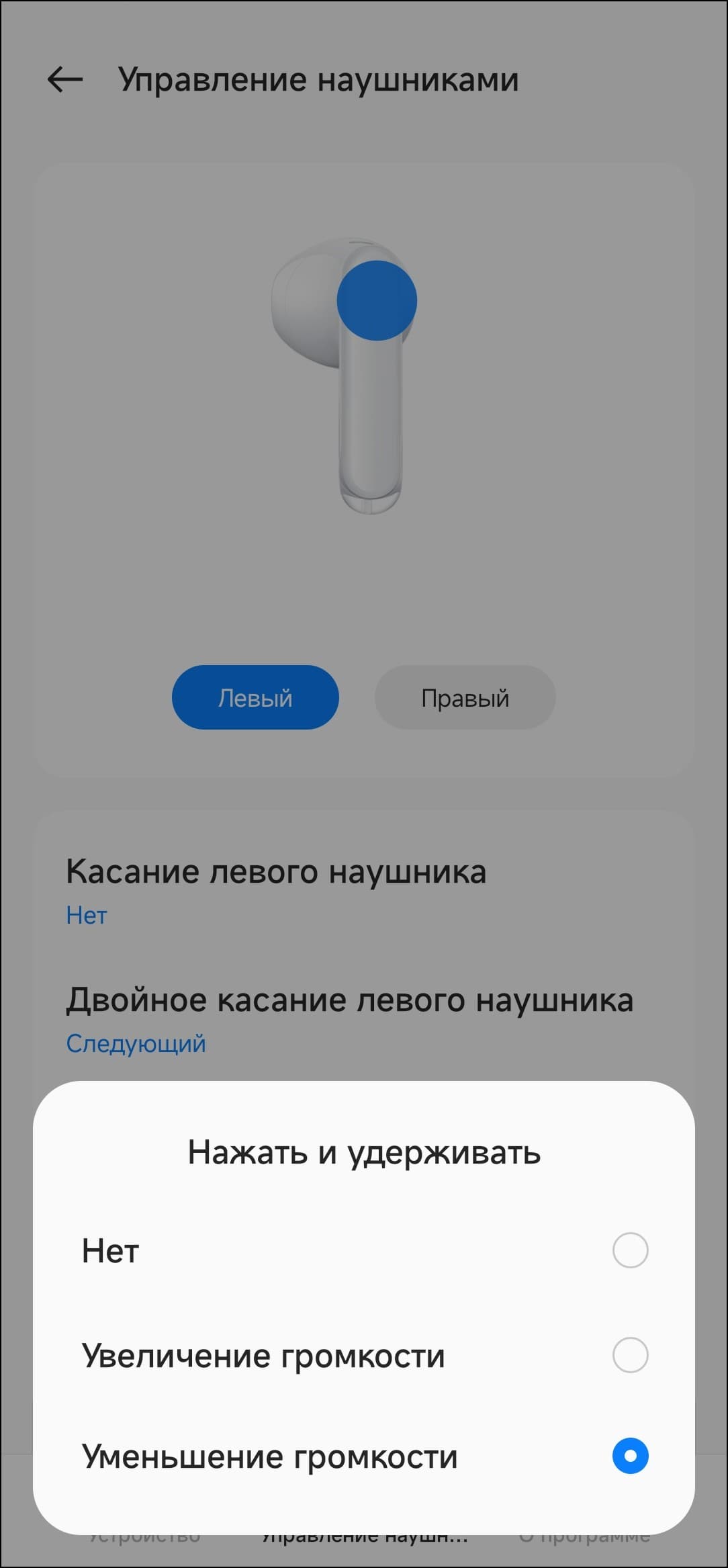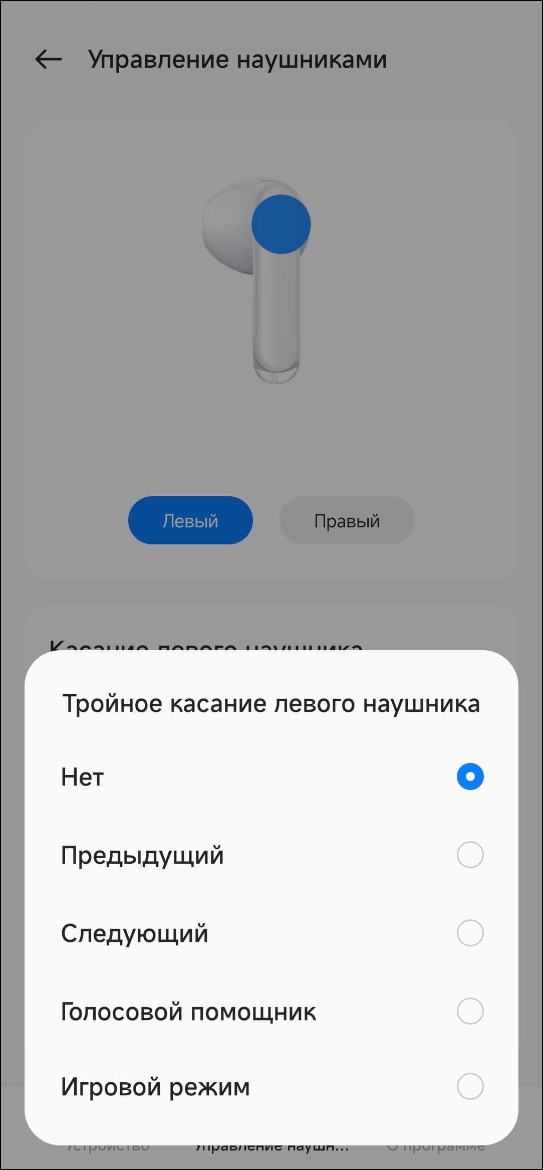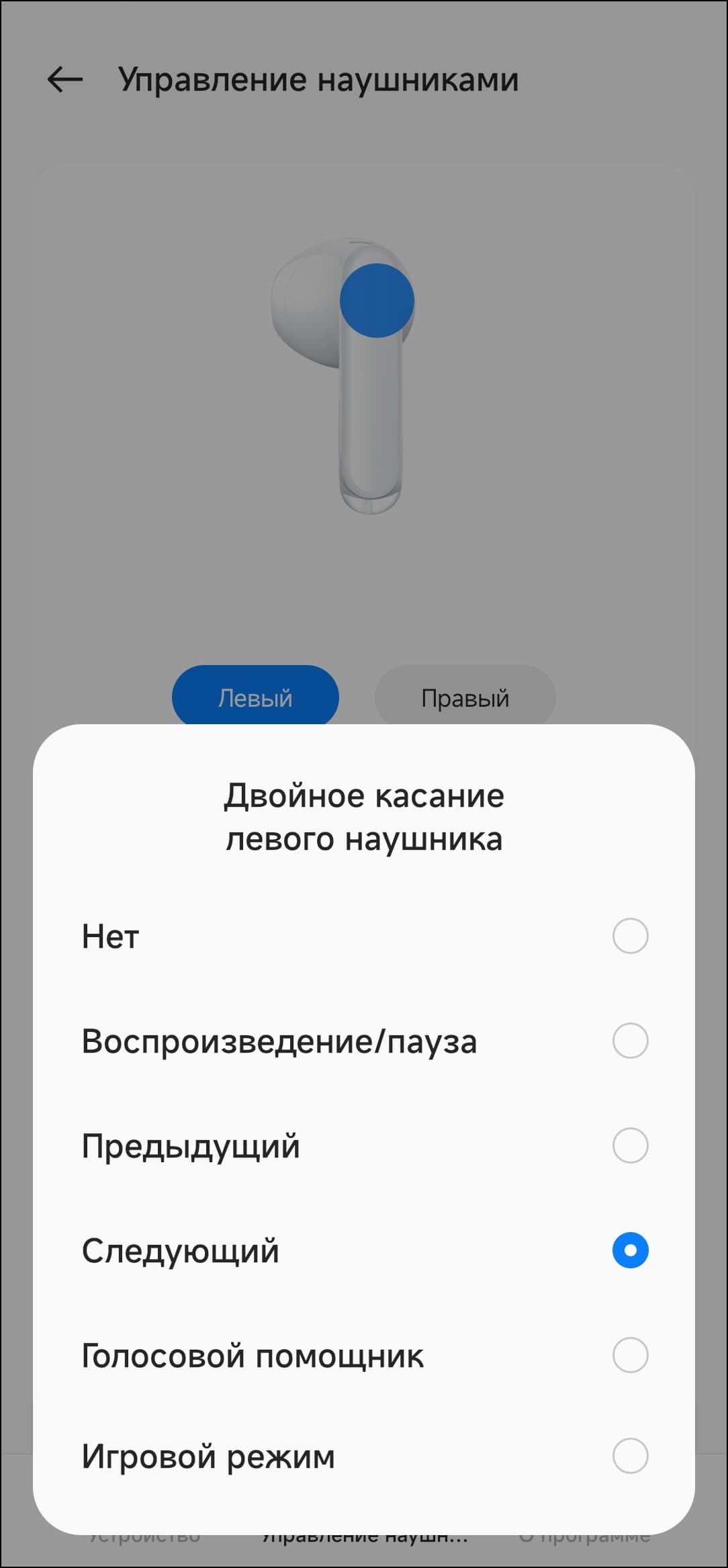 | Левый наушник | Правый наушник | |