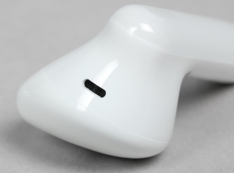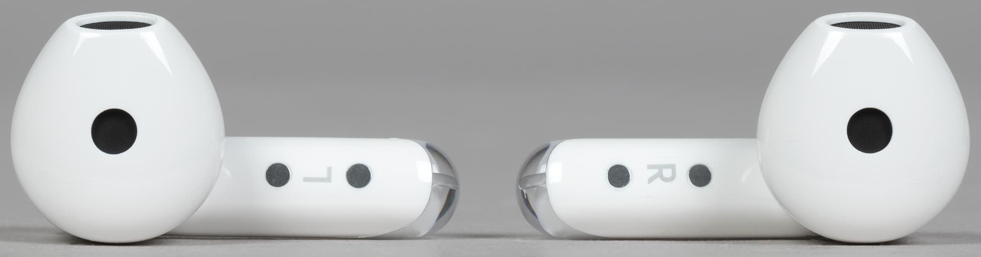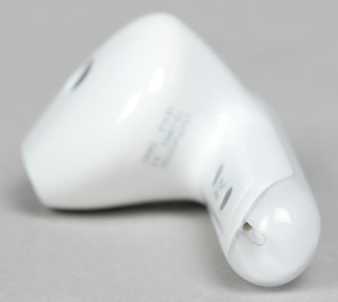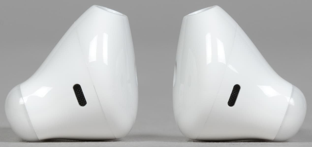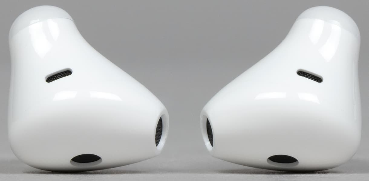 На верхней поверхности округлой части наушников видно щелевидное отверстие, за которым, вероятнее всего, скрываются микрофоны системы шумоподавления при звонке.
