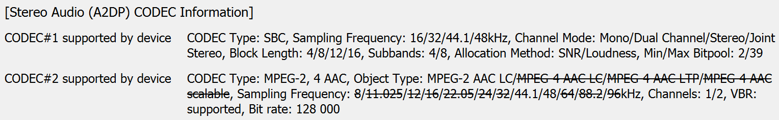 | Поддержка кодеков | SBC, AAC |