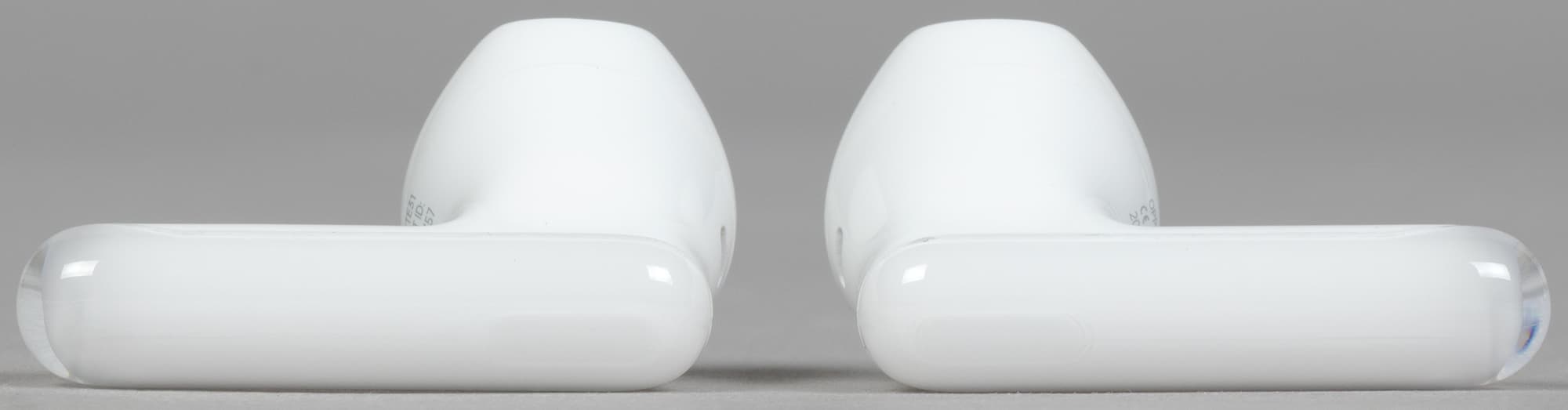 Длина «палочек» от основания корпуса — примерно 20 мм. Бывает и меньше, но и так тоже хорошо — за поднятый ворот, шарф или распущенные длинные волосы наушники цепляться не будут.