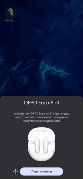 Oppo Enco Air3 поддерживает Google Fast Pair, потому подключение к устройствам под управлением более-менее свежих версий Android упрощено до предела. Открываем крышку кейса — видим всплывающее окно с приглашением подключиться к наушникам. Остается согласиться и немного подождать.