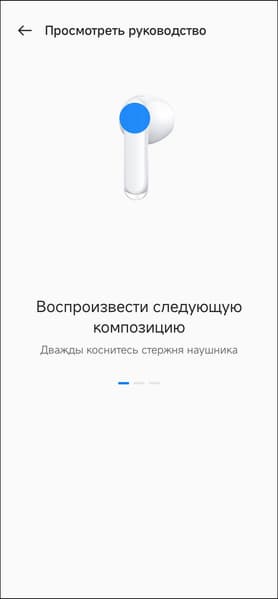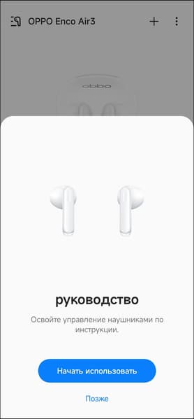 После добавления Oppo Enco Air3 в приложение HeyMelody пользователю предлагается ознакомиться с краткой инструкцией по управлению гарнитурой.
