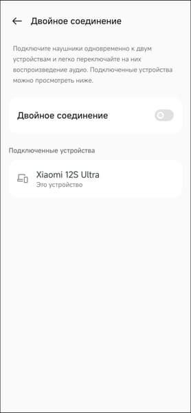 В правом верхнем углу есть «выпадающее» меню, позволяющее отключить устройство и удалить его из приложения. Нас же больше интересует раздел «двойное соединение», где можно задействовать мультипойнт. Для подключения второго источника надо прикоснуться к сенсорным зонам обоих наушников на 4 секунды, после чего произвести сопряжение стандартным способом.