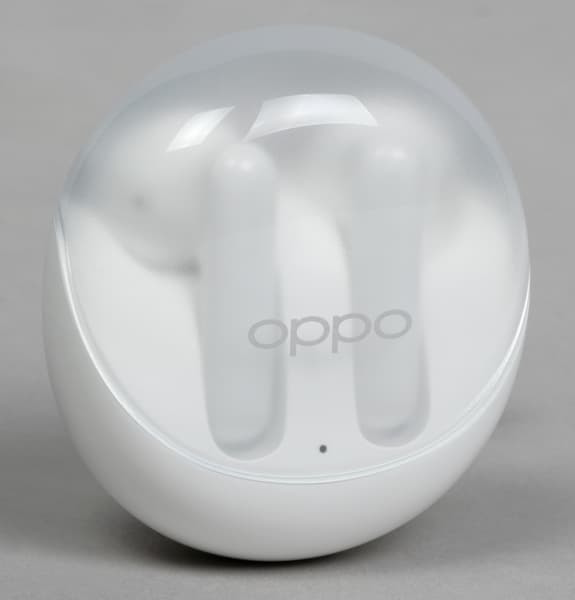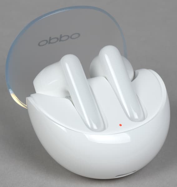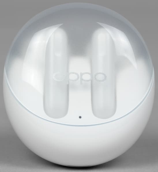 Разработчики Oppo Enco Air3 и ее предшественницы — далеко не первые, кто догадался сделать верхнюю крышку кейса прозрачной. Но в данном случае идея реализована довольно оригинальным образом: крышка прикрывает большую часть передней панели и открывает взору пользователя наушники практически целиком, а не только их верхнюю округлую часть.