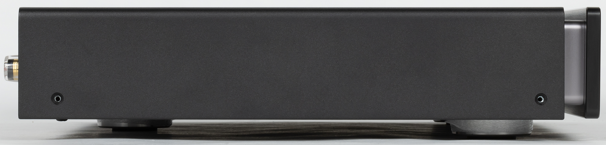 Выглядит прибор солидно и даже массивно, огромную лепту в такое впечатление вкладывает немного вынесенная вперед металлическая лицевая панель толщиной аж в 8 мм. При взгляде сбоку хорошо видно, как она расположена.