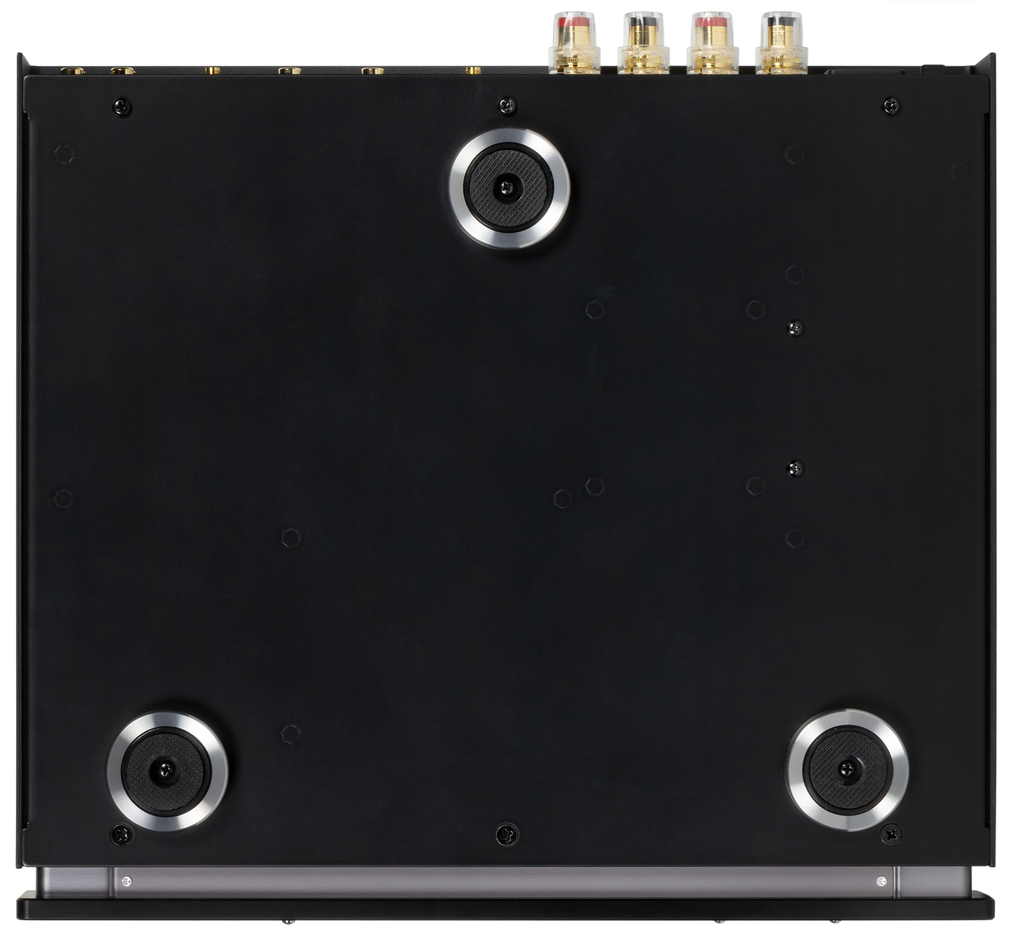 На нижней части корпуса размещено три ножки с резиновыми накладками. К устойчивости Primare I15 Prisma никаких вопросов не возникает — ножки сравнительно крупные, а масса устройства солидная и составляет более 6 кг.
