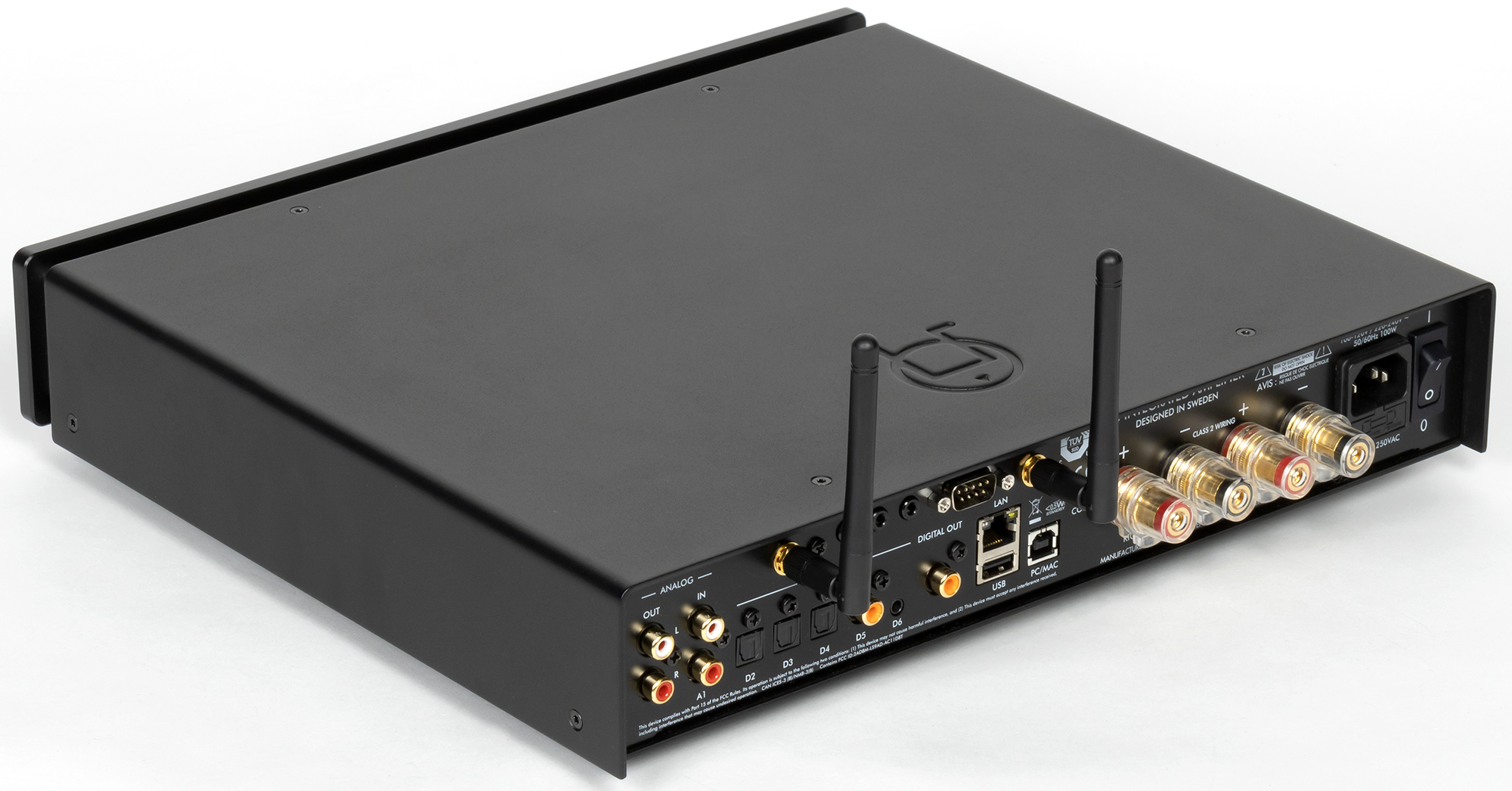 Антенны съемные, а количество разъемов довольно велико — перечислять их друг за другом будет долго и бессмысленно. Сразу стоит отметить, что прибор способен обеспечить своего владельца контентом и сам по себе, тем не менее к нему можно подключить и CD-транспорт, и виниловый проигрыватель через внешний фонокорректор, и телевизор… В общем, устройство вполне универсальное и может выполнять сразу несколько задач.