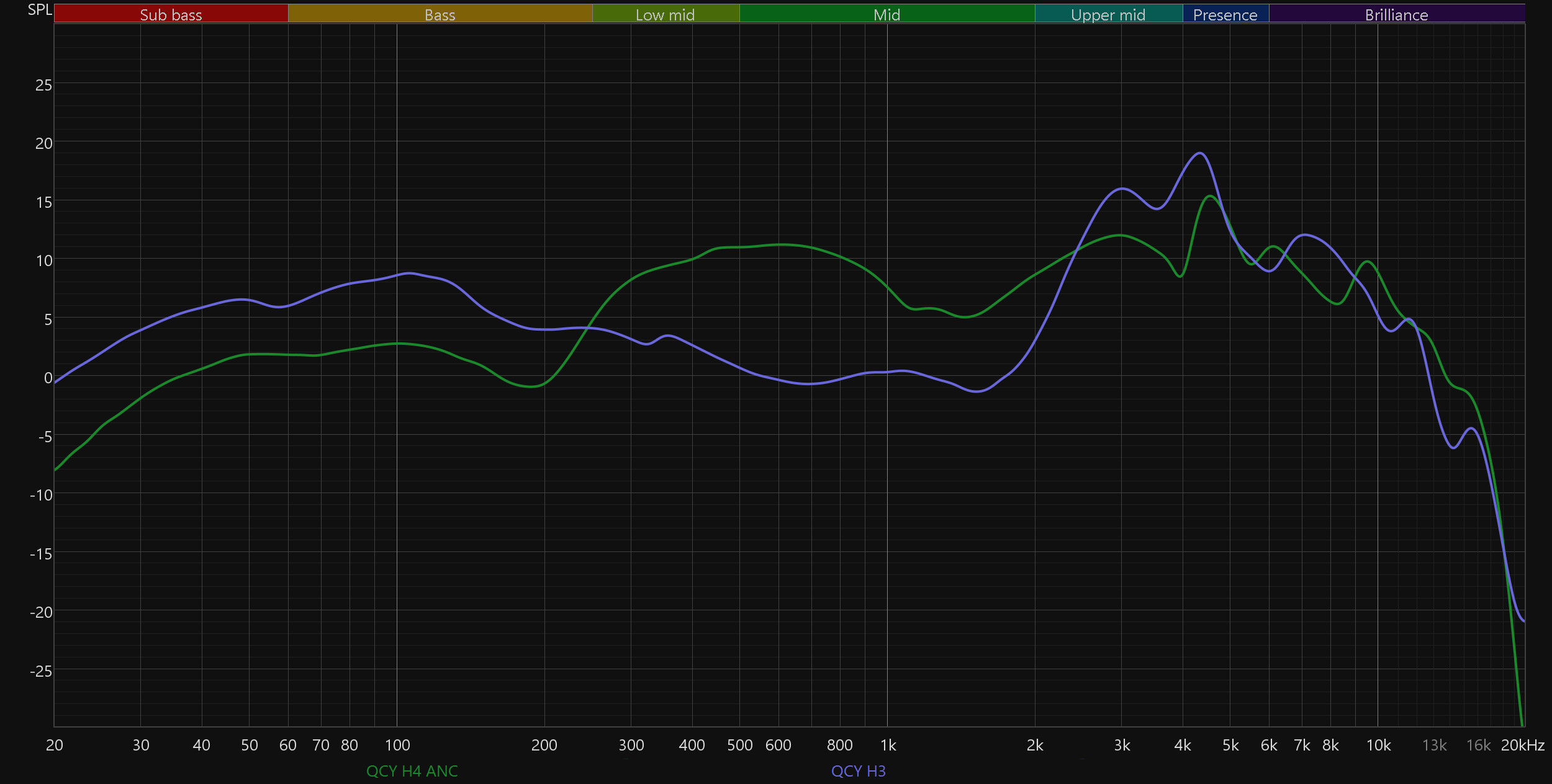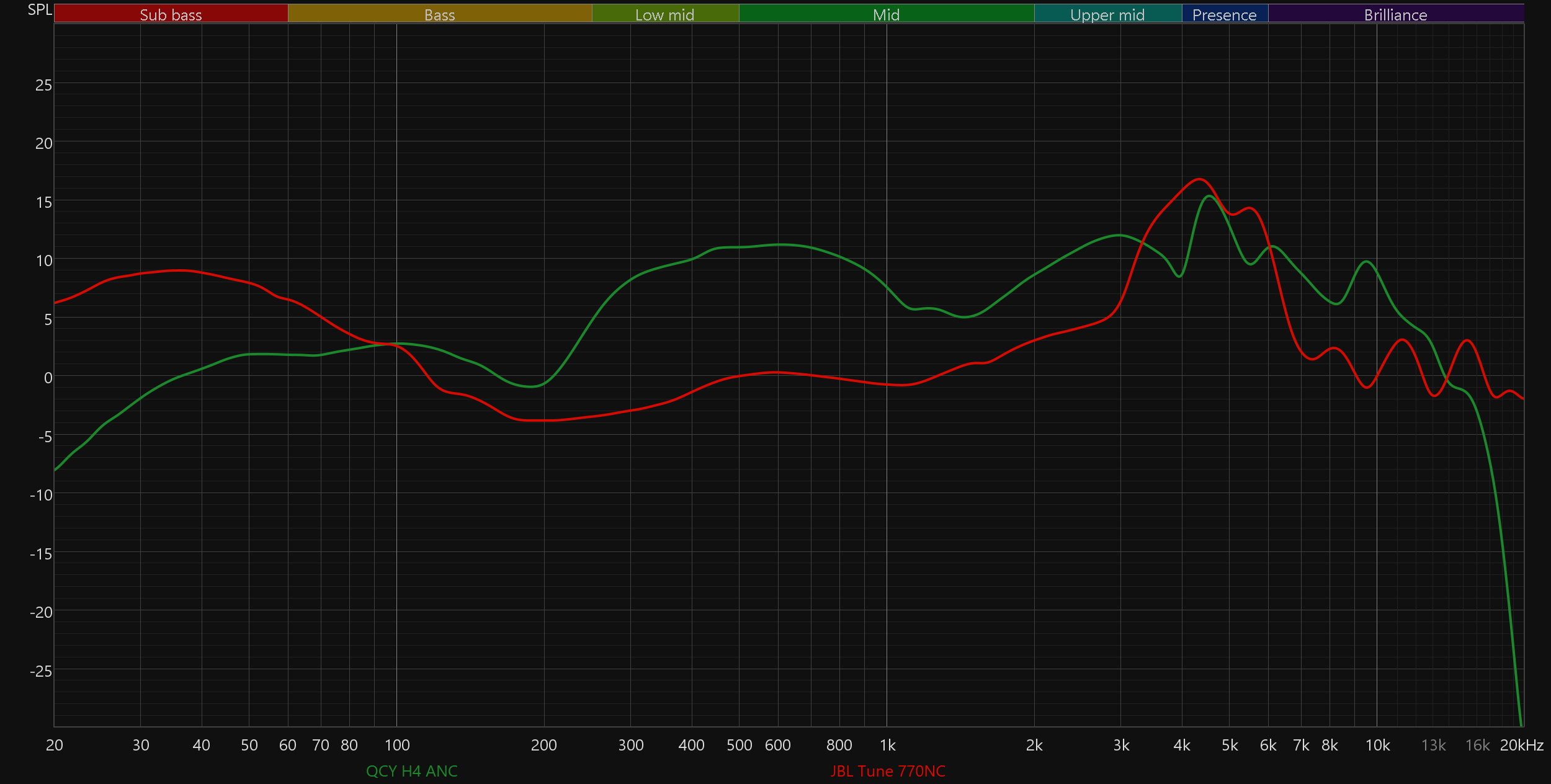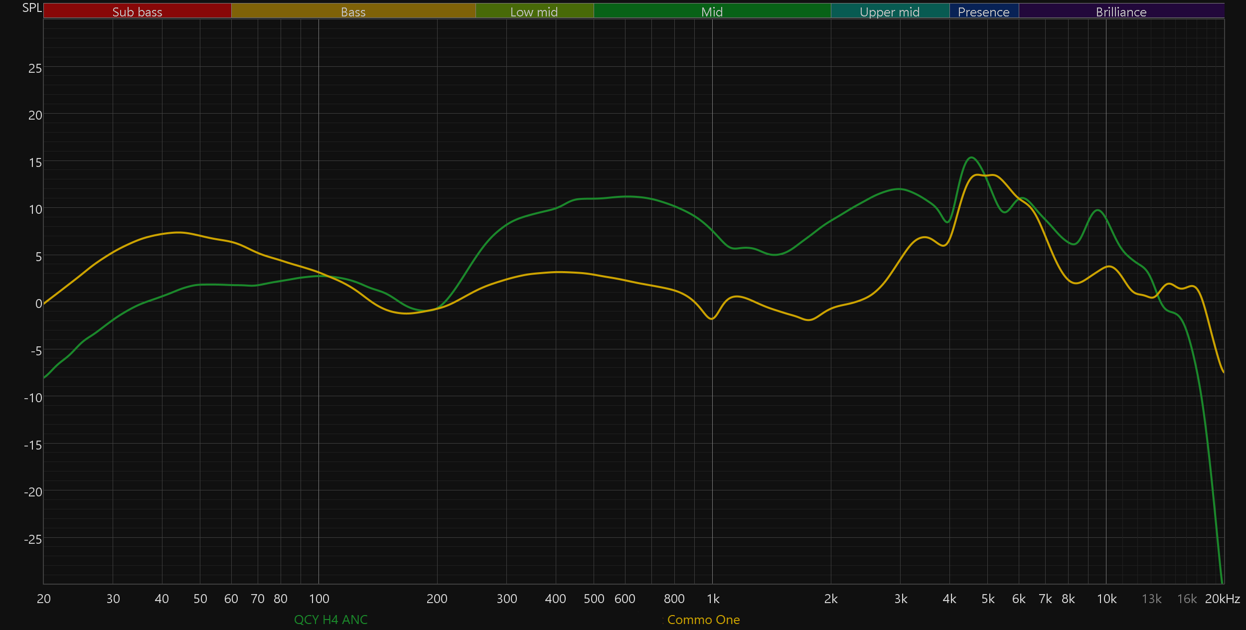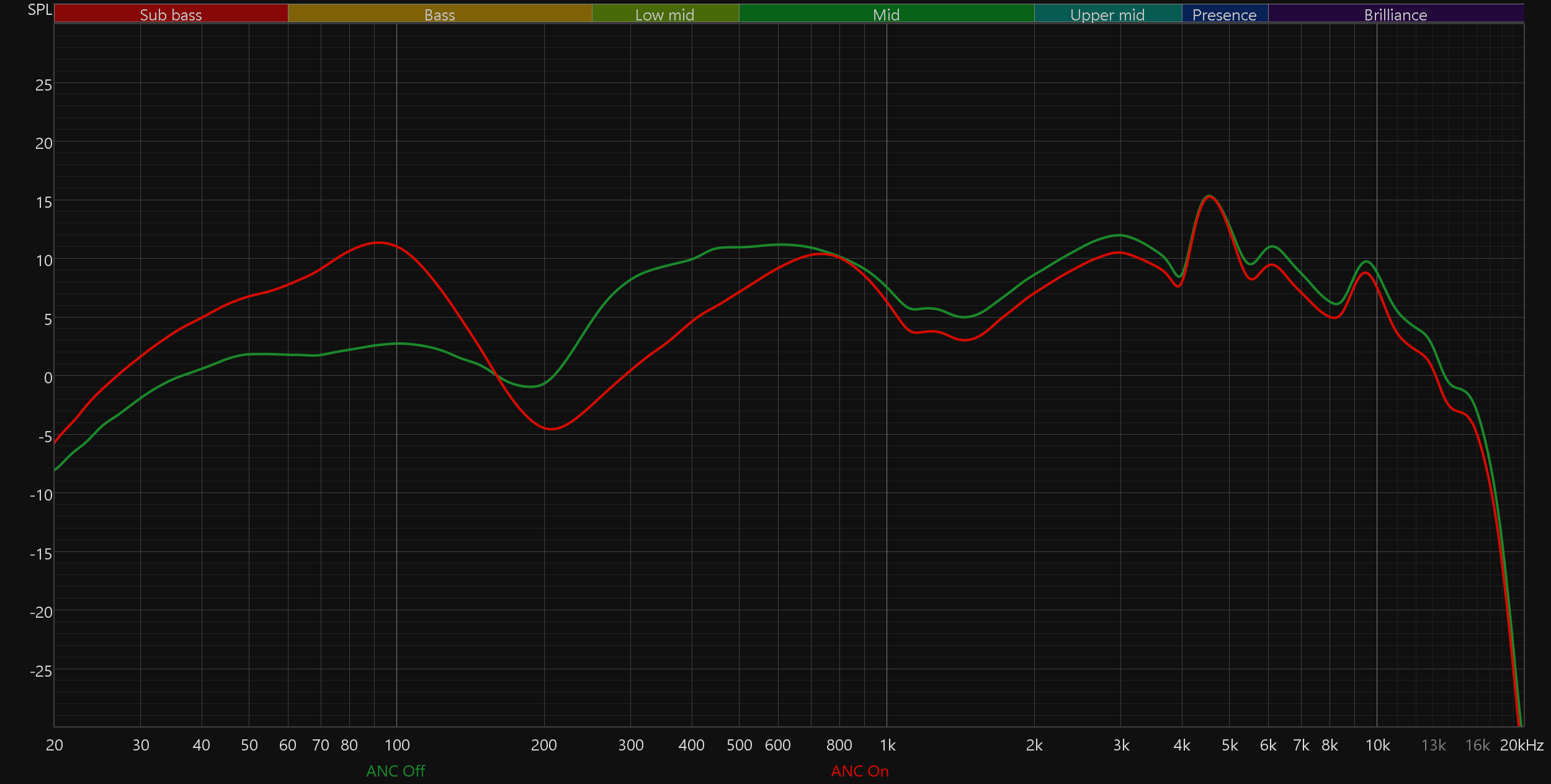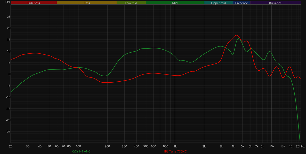Со звуком всё снова очень плохо. «Торчащая» из микса нижняя середина, невнятный, но при этом гулкий бас, резковатые высокие — не наушники, а сборник типичных дефектов звучания бюджетных моделей. Трудно выбрать, какой из «горбов» на графике АЧХ хуже, все вносят свою посильную лепту в то, чтобы максимально «расшатать» тональный баланс.