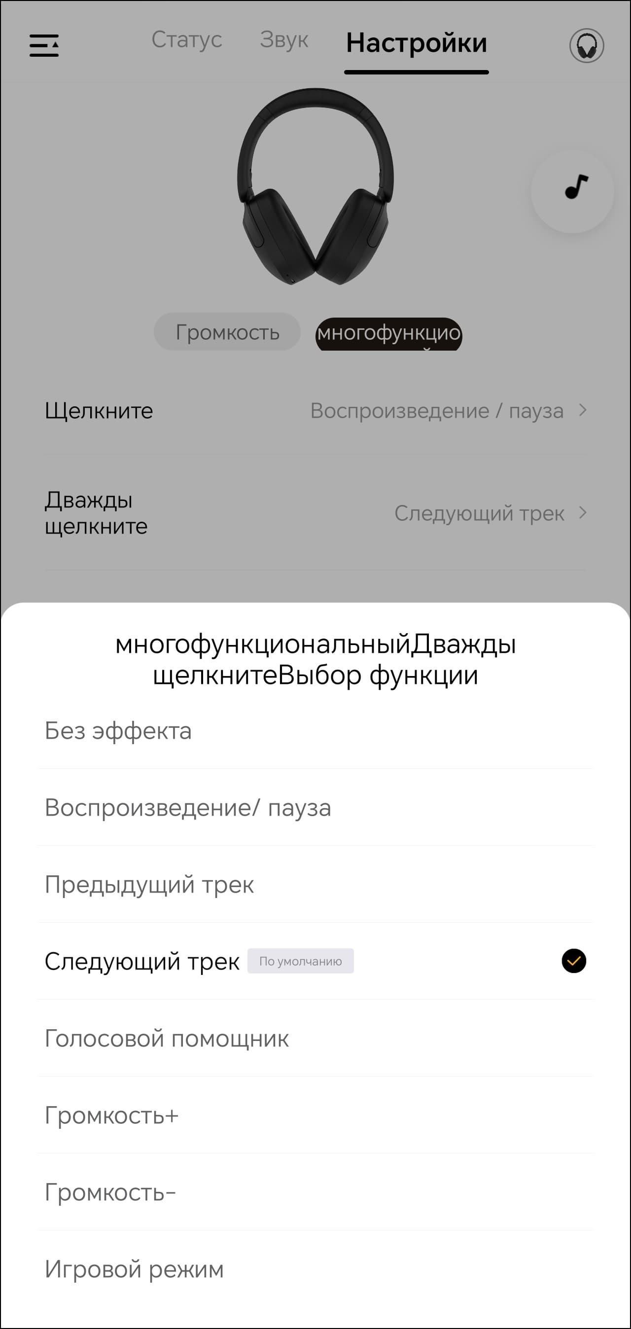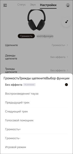 На первый взгляд — неплохая идея. Но только на первый. Если уж дотянулся до чашки наушника, проще приподнять ее над ухом, да и всё. Работает безотказно, эффективность тоже на высоте. При двойном касании сенсорная панель запускает игровой режим, при тройном — вызывает голосового ассистента. Конечно же, потенциально самая полезная функция активируется самым неудобным из возможных способов.